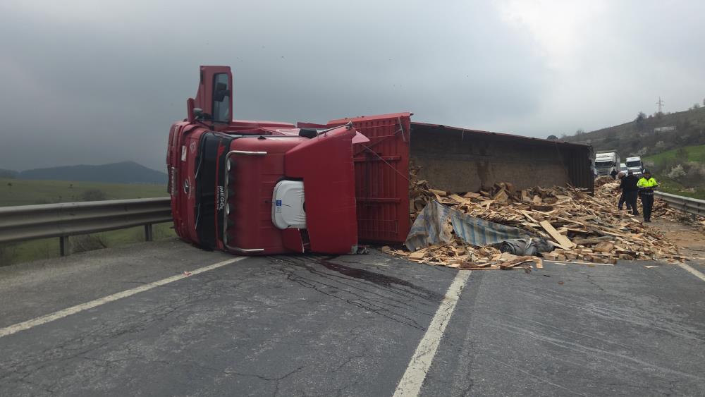 Kaza, Yalova-Bursa kara yolu Süpürgelik mevkiinde meydana geldi. Yalova istikametinden Bursa istikametine seyreden İbrahim Taşcan (40) yönetimindeki 16 Y 0017 plakalı tahta yüklü tır, bilinmeyen bir nedenle kontrolden çıkıp devrilerek sürüklendi. Kazada sürücü hafif yaralanırken, tırın kasasındaki tonlarca tahta yola saçıldı. Yolu tamamen kapatan kaza nedeniyle Yalova-Bursa yolunda trafik durdu.