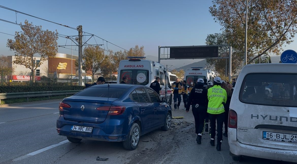 Olay, merkez Nilüfer ilçesi Karaman Mahallesi Mudanya Yolu üzerinde meydana geldi. Edinilen bilgiye göre, trafikte hız yapan ve birbirleriyle yarıştıkları öne sürülen iki otomobil sürücüsü, direksiyon hakimiyetini kaybetti. Kontrolden çıkan araçlar önce seyir halindeki belediye otobüsüne çarptı, çarpmanın etkisiyle savrulan araçlar kaldırıma çıkarak durabildi.