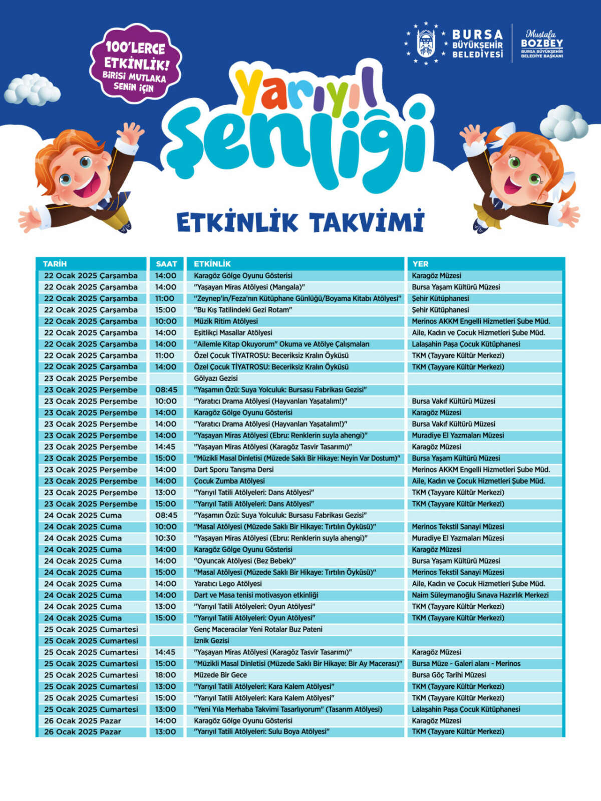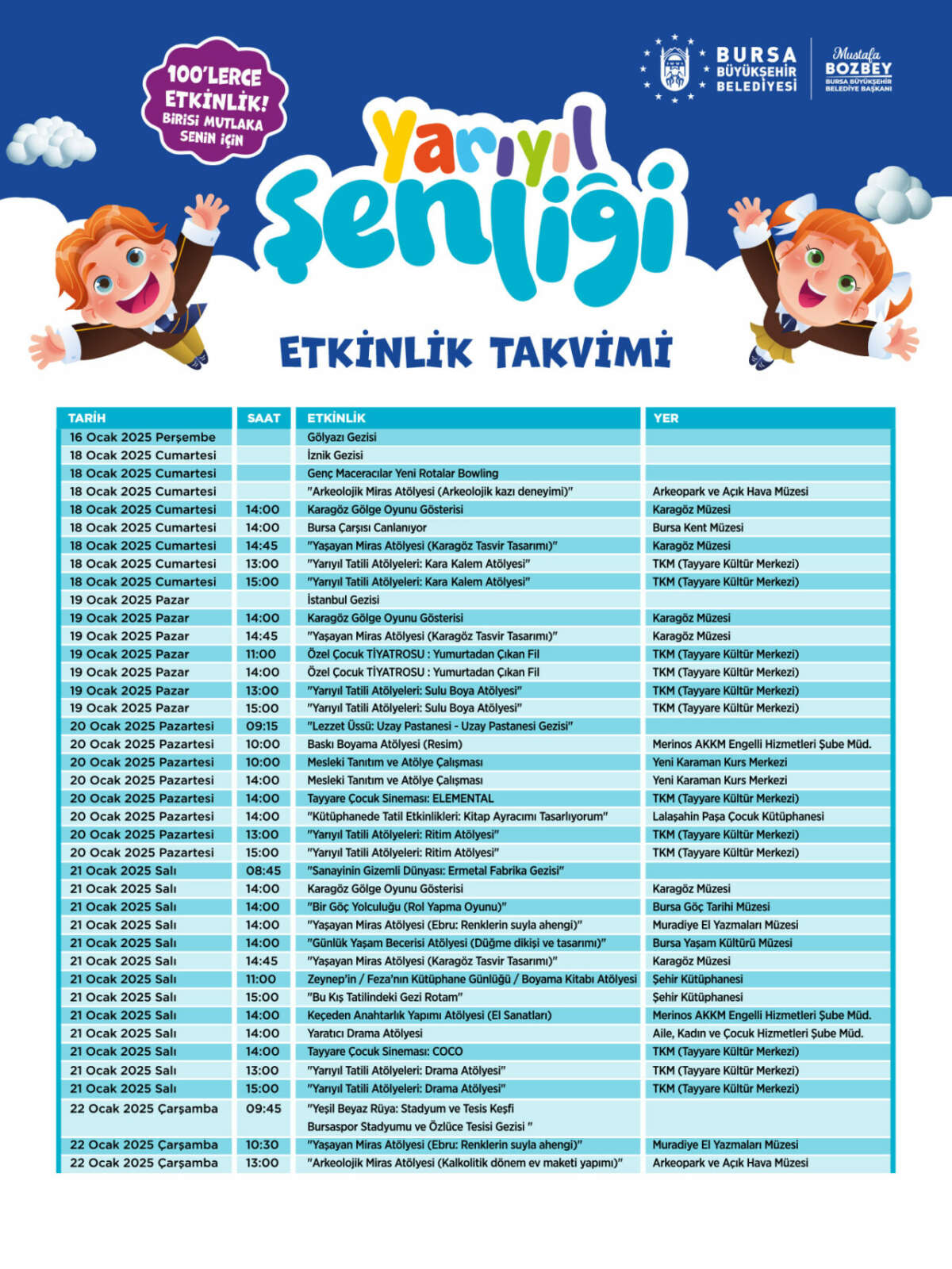 16 Ocak-2 Şubat tarihleri arasında gerçekleştirilecek bu keyifli program, öğrencilere hem eğlenceli hem de öğretici bir yarıyıl tatili sunmayı hedefliyor.