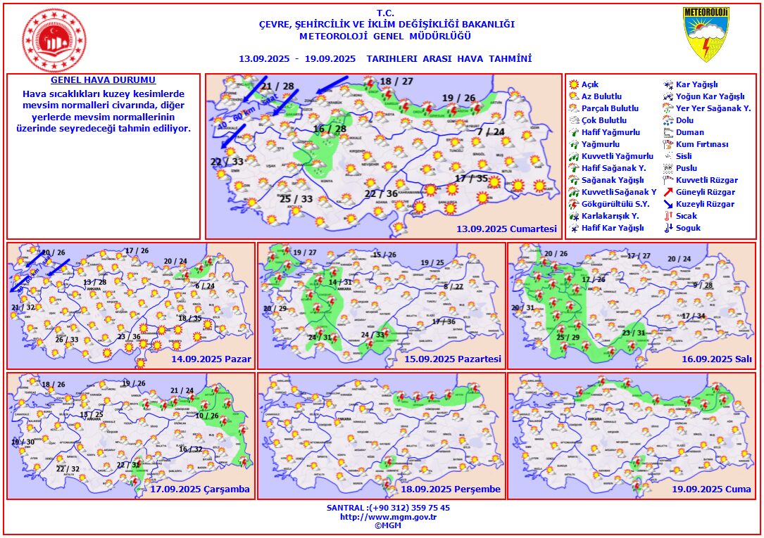 13 Eylül Cumartesi: Parçalı Bulutlu, 17 / 30 °C
