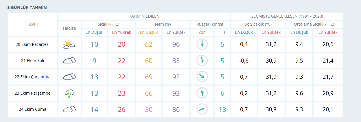 Hafta boyunca gündüz sıcaklıklarının en yüksek 26 derece, gece ise 9 dereceye kadar düşmesi tahmin ediliyor.