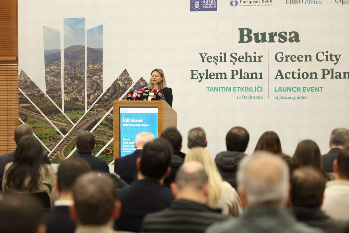 Bursa Büyükşehir Belediyesi’nin Avrupa İmar ve Kalkınma Bankası (EBRD) Yeşil Şehirler Programı kapsamında hazırladığı ve kentin çevresel sürdürülebilirliğini güçlendirmeyi hedefleyen ‘Bursa Yeşil Şehir Eylem Planı’, Atatürk Kültür Merkezi Merinos Yerleşkesi’ndeki toplantıda kamuoyuna anlatıldı.