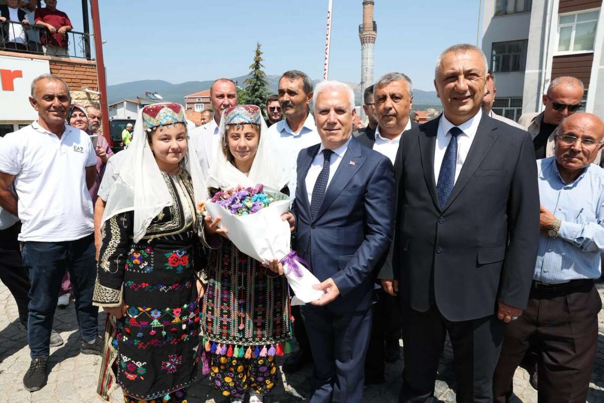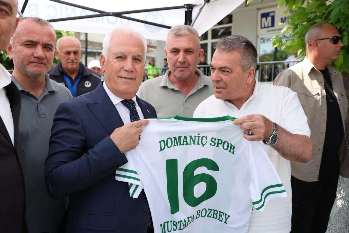 Tören alanında alkışlar eşliğinde karşılanan Başkan Bozbey, “Domaniç’i Bursa‘nın 18. ilçesi olarak görüyoruz. Seçimden önce bu meydanda konuşma yapmıştım. Domaniçli büyüklerimiz, ‘Başkanım hiç merak etme, o iş tamam’ demişlerdi. Bugün buradayız. Söz verdiğimiz gibi Domaniç’i 18. ilçemiz olarak görüyoruz ve destekliyoruz. Üretim yapan vatandaşlarımıza bir nebze olsun katkı sağlamak, onların yanlarında olduğumuzu göstermek maksadıyla 44 bin metre damlama sulama hortumu ve 2.200 litre sıvı gübre dağıtımı yaptık. Çiftçimizin yüzü gülsün istiyoruz” dedi.