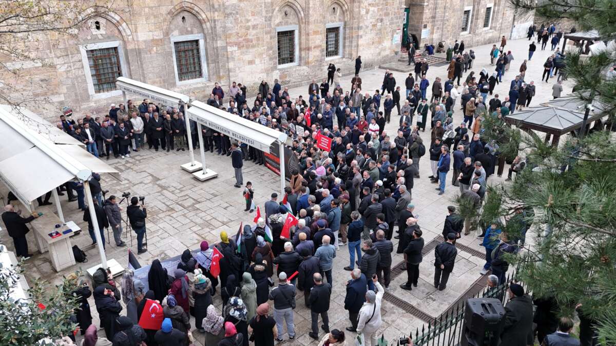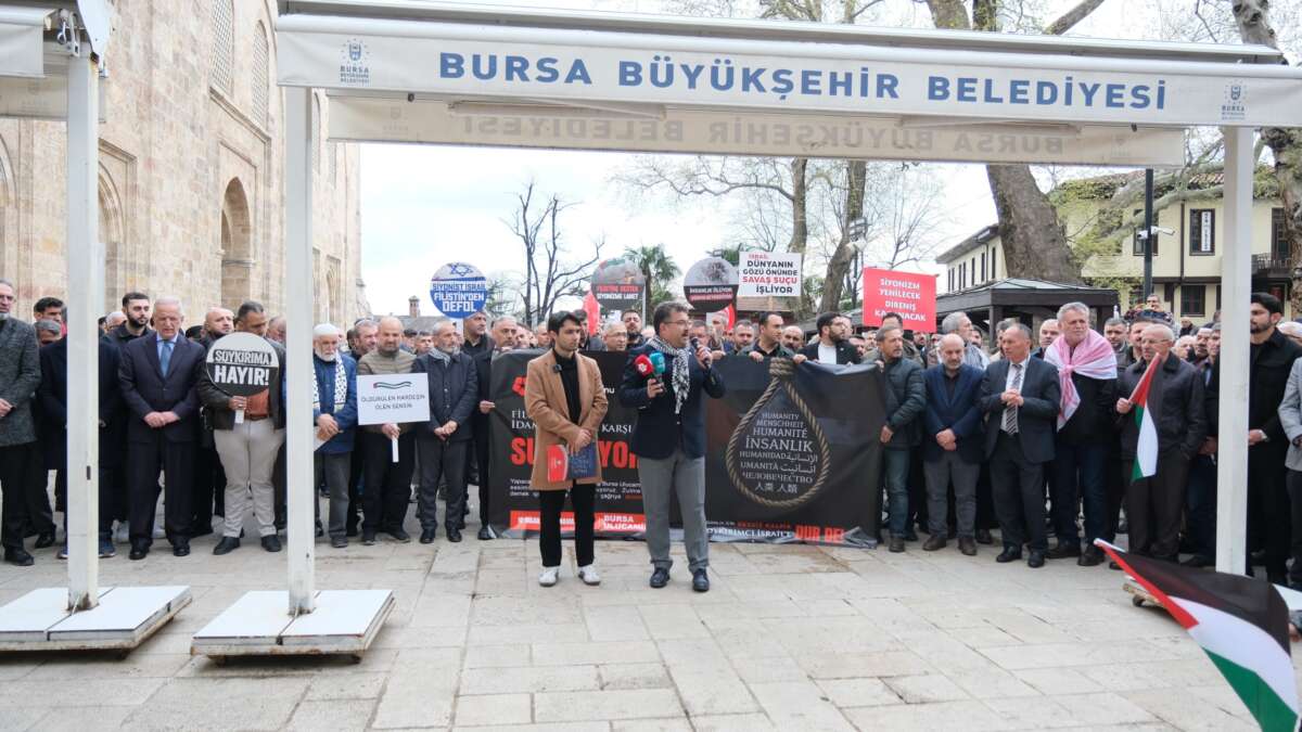 Bursa’da Filistin’e destek amacıyla gerçekleştirilen basın açıklamasında, İsrail’in Gazze başta olmak üzere bölgede gerçekleştirdiği saldırılara tepki gösterildi. Yoğun katılımın olduğu programda, Filistin’e Destek Platformu Bursa Başkanı Ramazan Acar’ın selamlama konuşmasının ardından Filistin’e Destek Platformu tarafından hazırlanan metin kamuoyuyla paylaşıldı.