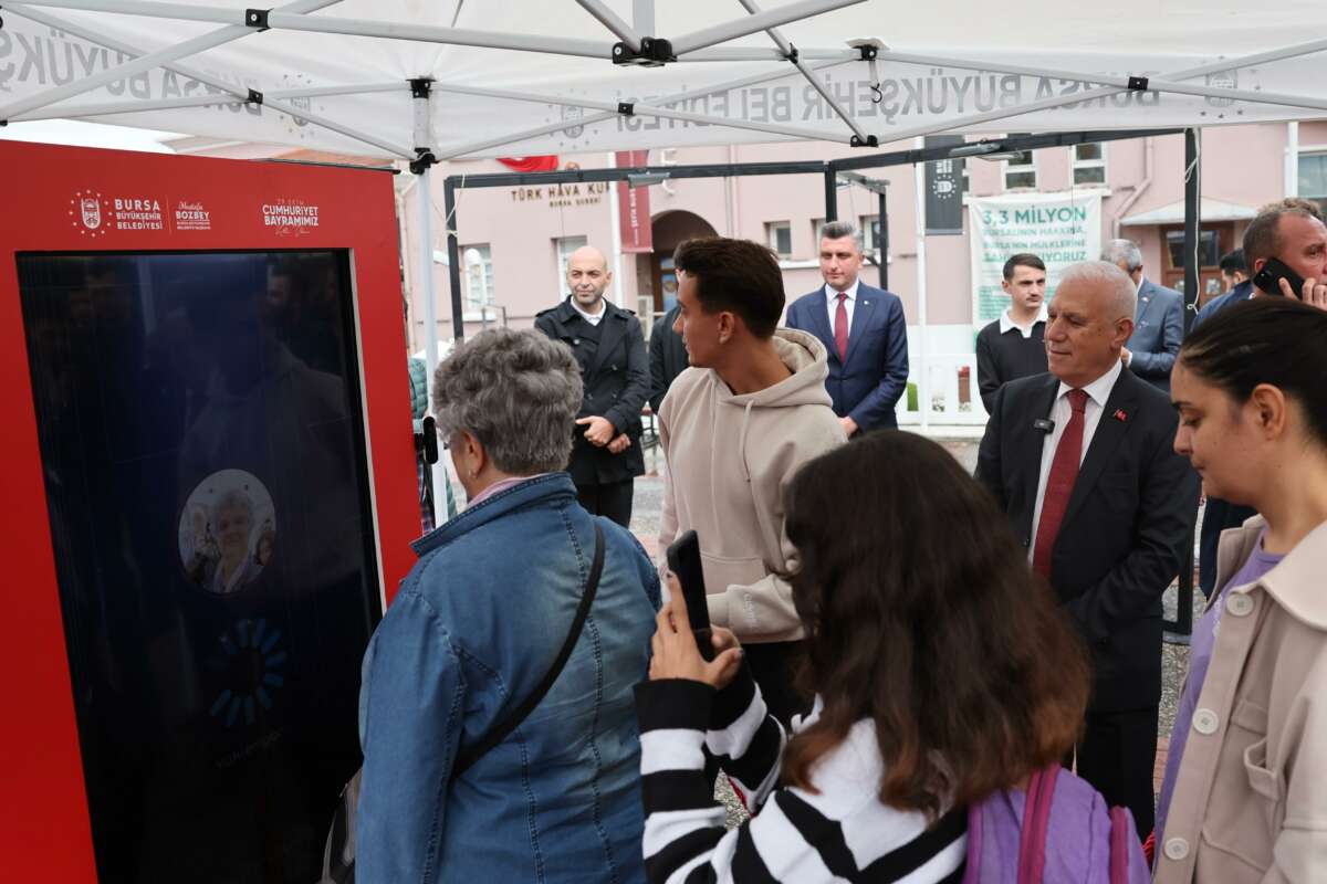 Bursa Büyükşehir Belediyesi, Cumhuriyet coşkusunu daha özel kılmak ve vatandaşlara unutulmaz bir hatıra bırakmak amacıyla kentin farklı noktalarına yapay zekâ kiosklar yerleştirdi. Bu kiosklar aracılığıyla fotoğraf çektiren vatandaşlar, yapay zekâ teknolojisi sayesinde Ulu Önder Mustafa Kemal Atatürk ile aynı karede yer alma mutluluğunu yaşadı. Hayata geçirilen bu uygulama, 28 Ekim’de UNESCO Tarihi Meydanı ve Bursa Şehirlerarası Otobüs Terminali’nde vatandaşlarla buluşurken, 29 Ekim’de ise PodyumPark ile Kent Meydanı’nda vatandaşların hizmetinde olacak.