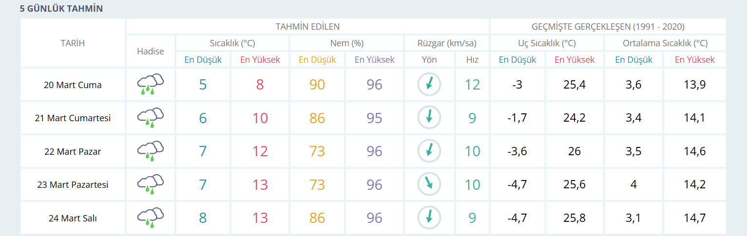 İşte Bursa için yayınlanan 5 günlük hava durumu raporu: