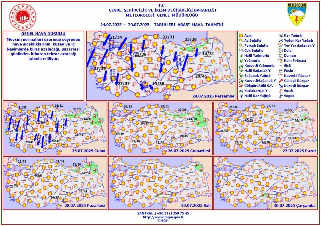 24 Temmuz Perşembe: 23°C / 40°C – Çok sıcak