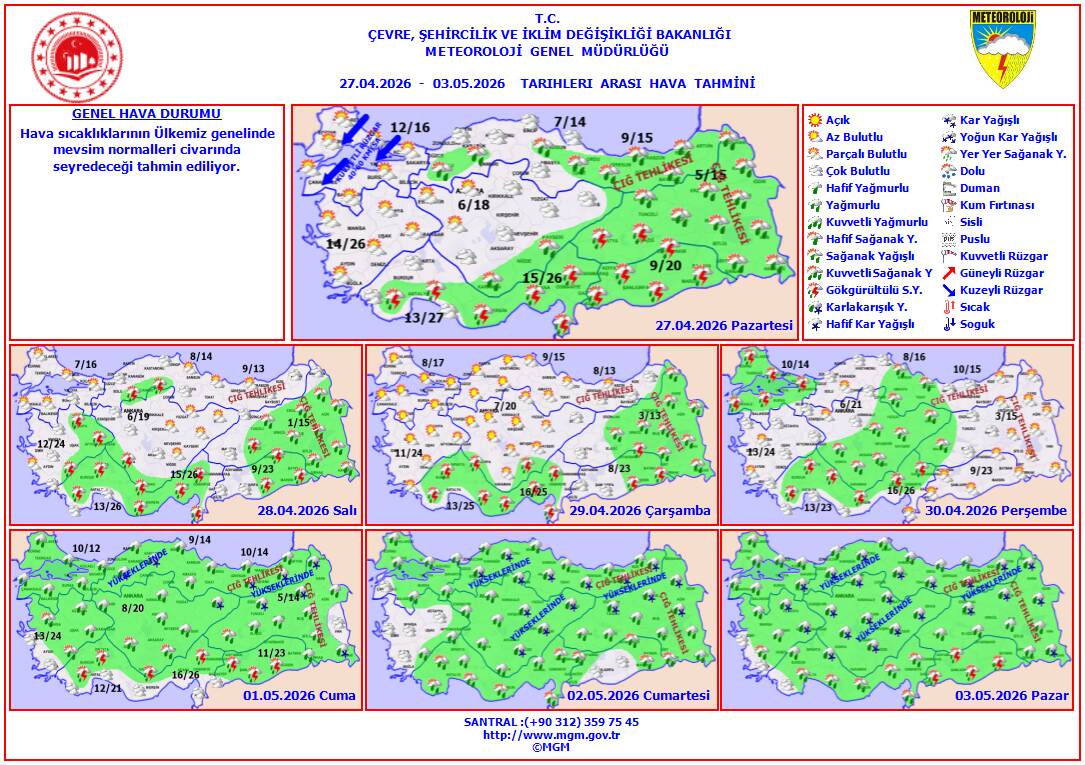 - 1 Mayıs Cuma: Sağanak Yağışlı, 8°C / 13°C