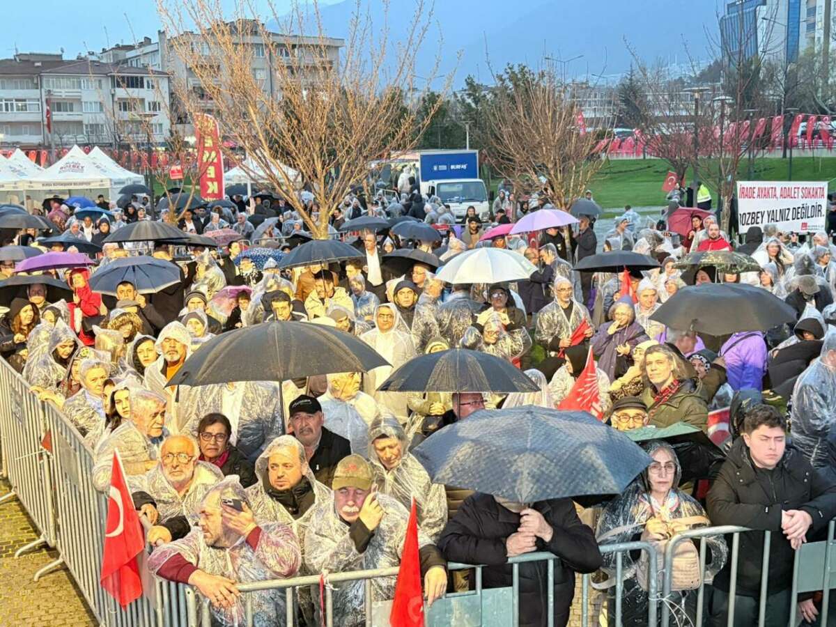 Bursa Büyükşehir Belediye Başkanı Mustafa Bozbey’in gözaltına alınmasının ardından kentte tepkiler devam ediyor. Gözaltının ikinci gününde partililer ve vatandaşlar, Bursa Büyükşehir Belediye Binası önünde toplanarak Bozbey’e destek verdi. Yağmura rağmen alanı gelen vatandaşlar, attıkları sloganlarla hem Bozbey’e sahip çıktı hem de yaşanan sürece tepki gösterdi.