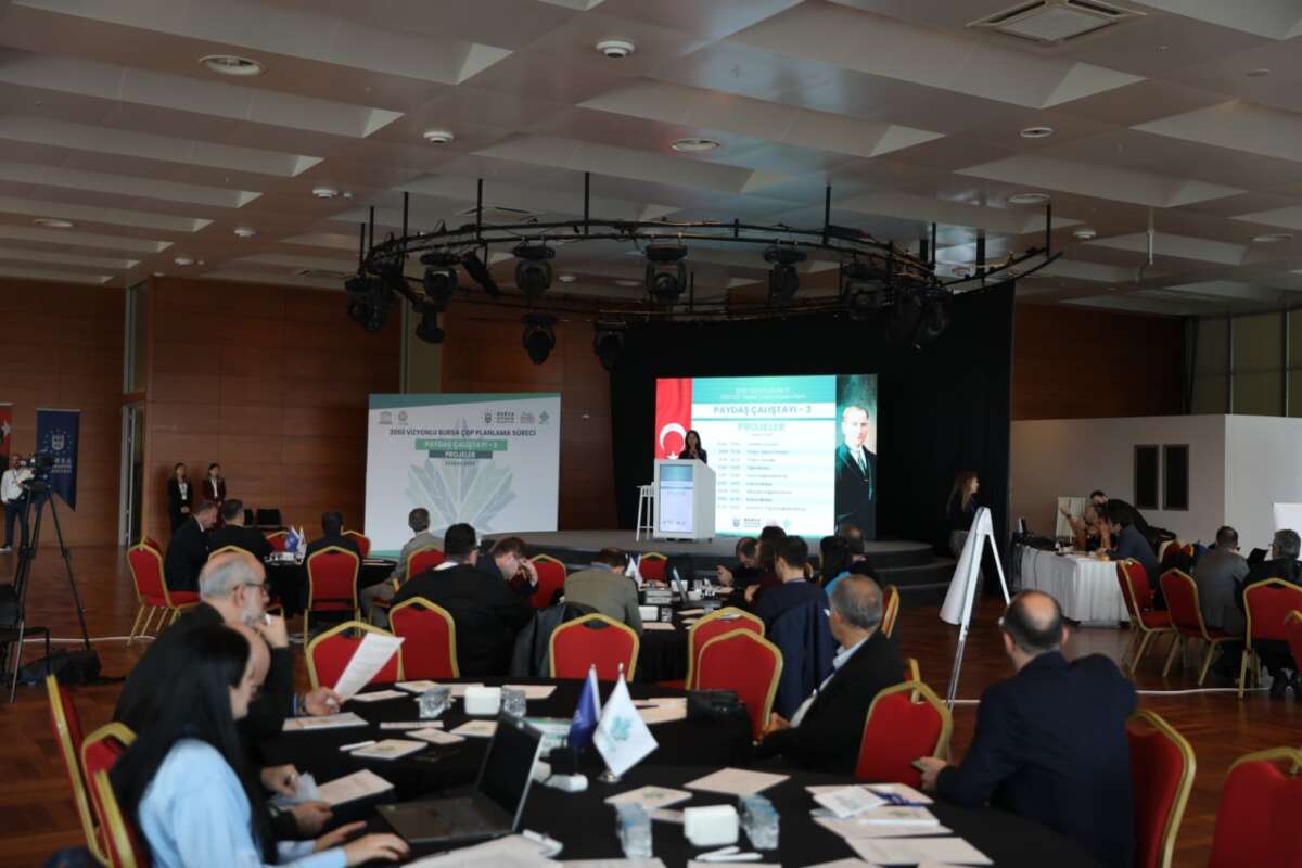 Atatürk Kültür Merkezi Merinos Yerleşkesi’ndeki çalıştayın üçüncü toplantısına, Büyükşehir Belediyesi Genel Sekreteri Doç. Dr. Ergül Halisçelik’in yanı sıra Büyükşehir Belediyesi yöneticileri, merkezi yönetim, yerel yönetim, meslek odaları, üniversiteler, özel sektör ve sivil toplum kuruluşlarının temsilcileri katıldı. İkinci toplantıda, Bursa’nın güçlü ve zayıf yönleri üzerine çıkarılan veriler sentezlenip stratejik öncelikler ortaya koyulmuştu. Üçüncü toplantıda ise Bursa’nın 2050 vizyonuna ulaşmasını sağlayacak yenilikçi proje fikirleri üretildi.