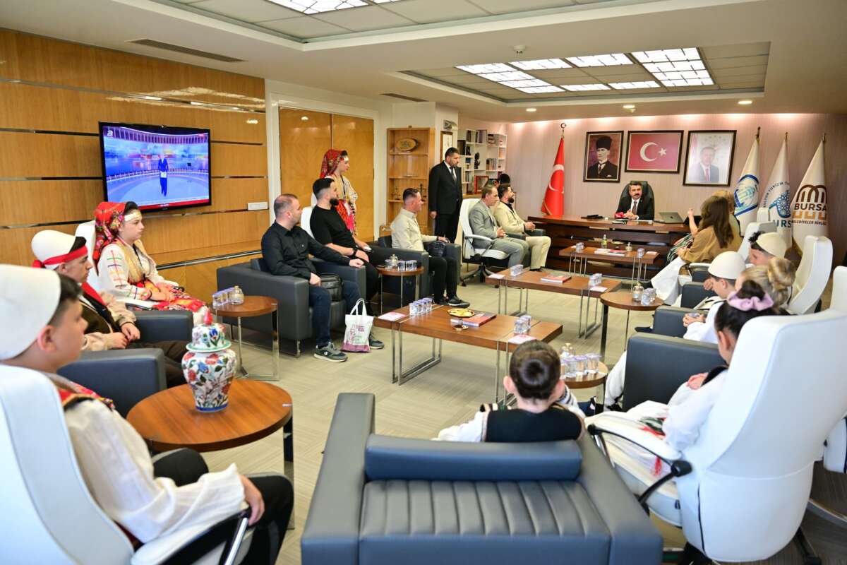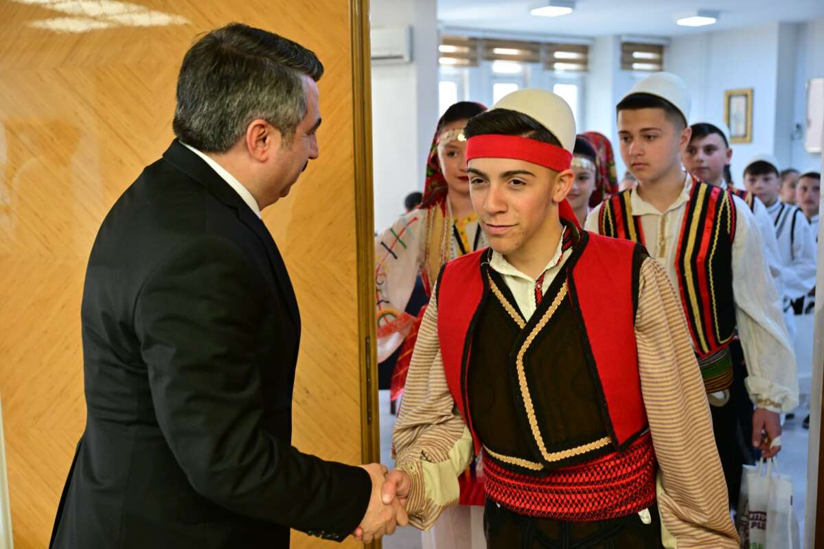 23 Nisan Ulusal Egemenlik ve Çocuk Bayramı kutlamaları için Bursa’ya gelen Kuzey Makedonya ve Kosova halk dansları topluluğu üyesi çocuklar, Yıldırım Belediye Başkanı Oktay Yılmaz’ı makamında ziyaret etti. Başkan Oktay Yılmaz, çocuklarla yakından ilgilenerek sohbet etti. Ziyaretten duyduğu memnuniyeti dile getiren Başkan Oktay Yılmaz, 23 Nisan’ın sadece Türkiye için değil tüm dünya çocukları için özel bir gün olduğuna vurgu yaparak, “23 Nisan Ulusal Egemenlik ve Çocuk Bayramı, Gazi Mustafa Kemal Atatürk tarafından sadece Türk çocuklarına değil, tüm dünya çocuklarına armağan edilmiş eşsiz bir bayramdır. Bu yönüyle barışın ve kardeşliğin en güçlü sembollerinden biridir” dedi. Kosova ve Kuzey Makedonya ile Türkiye arasındaki bağların güçlü olduğuna vurgu yapan Yılmaz, “Balkan coğrafyasıyla aramızda sadece coğrafi değil, tarihsel ve kültürel olarak da çok derin bağlar bulunuyor. Kosova ve Kuzey Makedonya’dan gelen evlatlarımızı burada görmek, bu kardeşliğin en güzel göstergesidir. Ortak tarihimiz, kültürümüz ve gönül bağımız bizleri her zaman bir arada tutacaktır” ifadelerini kullandı.