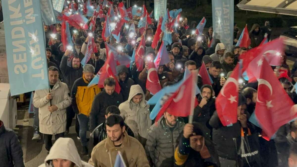 Taraflar arasında anlaşma sağlanamaması üzerine işçiler, sabahın erken saatlerinde karanlıkta fabrika önünde bir araya geldi. Cep telefonlarının ışıklarını yakan çalışanlar, sloganlar eşliğinde pankart açarak tepkilerini dile getirdi.