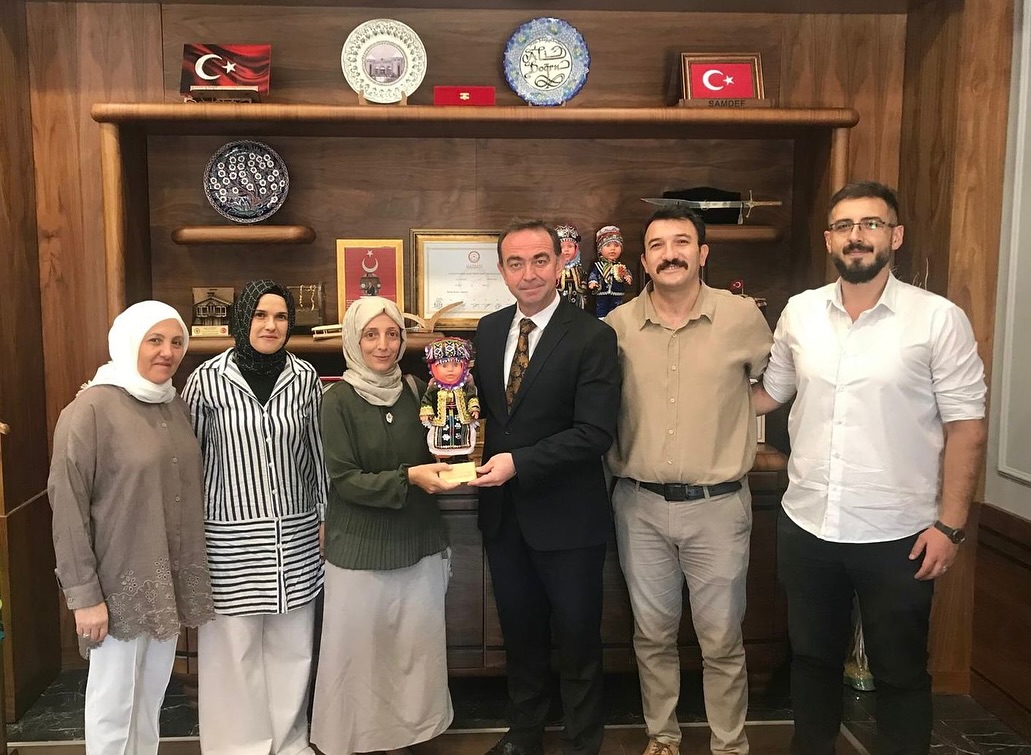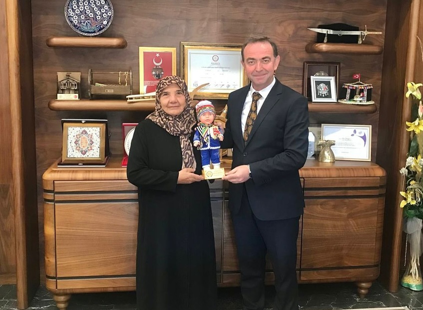 Keles Kaymakamlığı Sosyal Yardımlaşma Vakfı Müdürü Gökmen Demir, Keles Aile Destek Merkezi’nde görev yapan öğreticiler ve kursiyerlerle birlikte Keles Belediye Başkanı Ali Doğru’yu ziyaret etti. Ziyarette, merkezin yürüttüğü projeler hakkında bilgi verilirken özellikle Keles Bebeği’nin geleneksel yöntemlerle üretimi ve tanıtımı üzerinde duruldu.