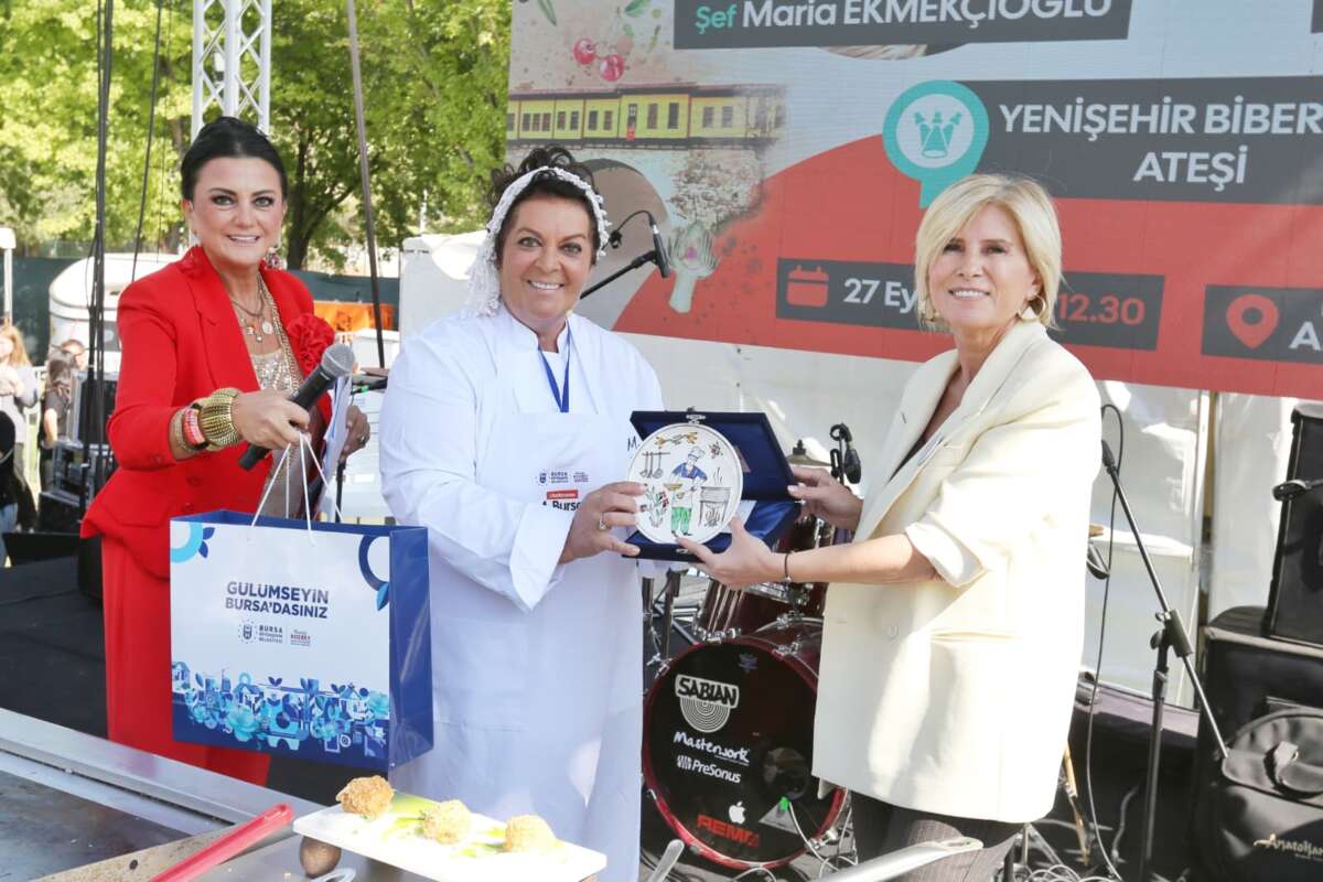 Şef Maria Ekmekçioğlu ise, Bursa Uluslararası Gastronomi Festivali’nin her sene daha da güzelleştiğini dile getirdi. Bursa’nın şeflerinin festivalde öne çıkartılmasının önemli olduğunu anlatan Ekmekçioğlu, “Hepimizin yanına Bursa’nın bir şefini vererek onunla beraber yemek yapmamız sağlandı. Çok güzel bir düşünce. Tescilden Tabağa Bursa Gastronomisi’ kitabını da çok önemli buluyorum. Yeni tarifler üretmek için Bursa bize ilham kaynağı oluyor” dedi.