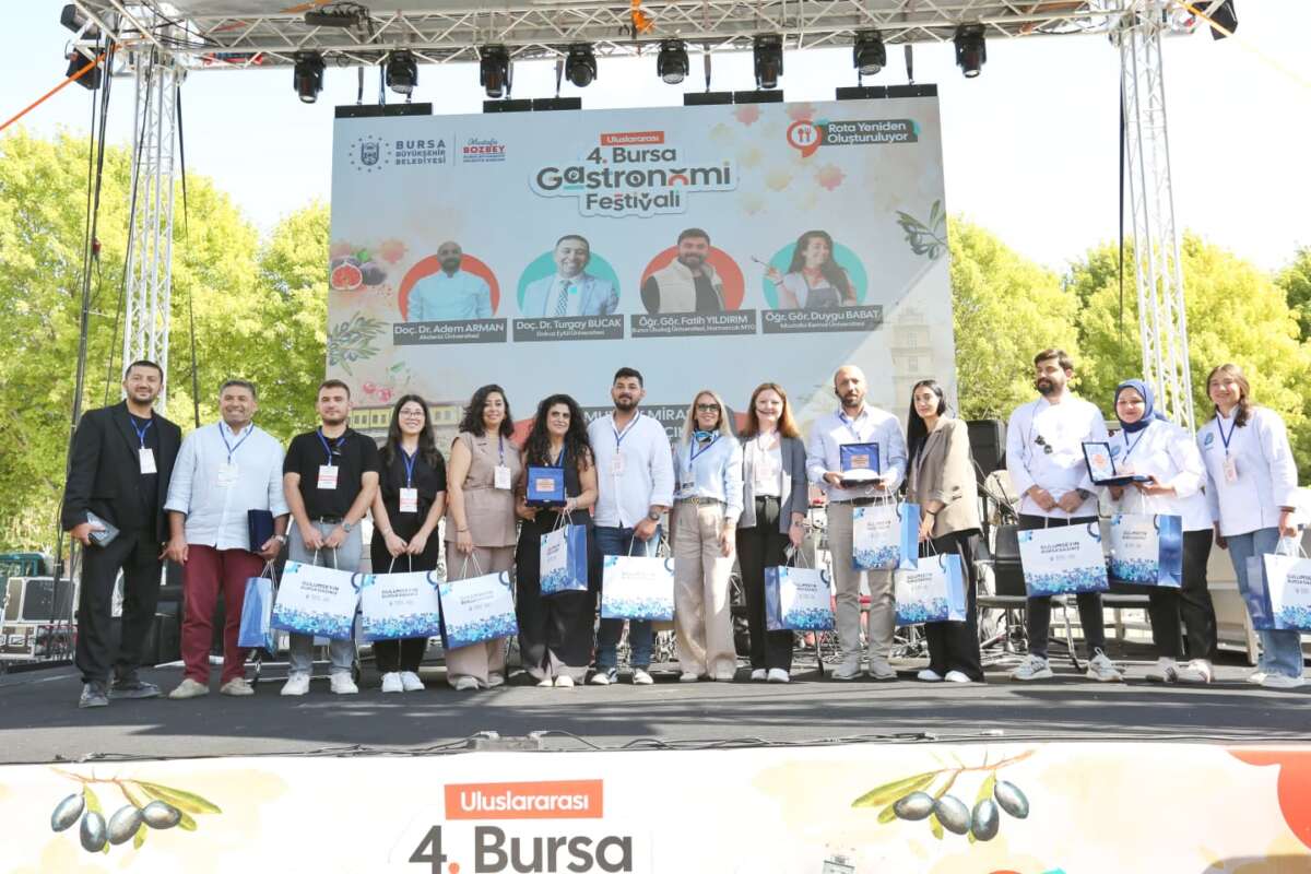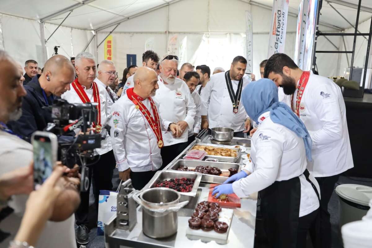 Bursa’nın gastronomi kültürünü ortaya çıkarmak amacıyla zengin bir içerikle hazırlanan 4. Bursa Uluslararası Gastronomi Festivali, birbirinden renkli etkinlik ve yarışmalara sahne olmaya devam ediyor. Dünyanın ve Türkiye’nin dört bir tarafından gelen şefler, Bursa’nın yöresel ürünlerini kullanarak birbirinden farklı tabaklar hazırladı.