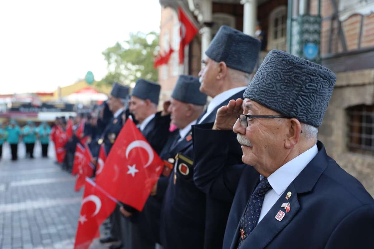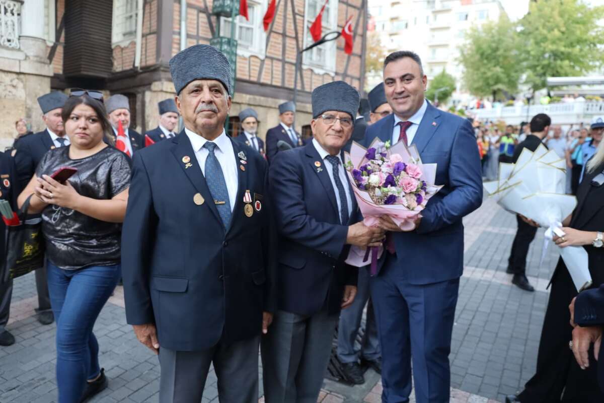 Şehrin kurtuluşunu temsili olarak canlandıran Türkiye Muharip Gaziler Derneği Bursa Şubesi üyesi gaziler, Türk bayrakları ile Tarihi Belediye Binası’nın önüne geldiğinde Bursalılar tarafından alkışlandı. İstiklal Marşı’nın okunması sırasında Tarihi Belediye Binası’ndaki Türk bayrağı, gaziler tarafından sembolik olarak asıldı. Ardından milis kuvvetleri temsilcileri, Türk bayrağını öperek Vali Yardımcısı Rıza Gençoğlu’na teslim etti. Başkanvekili Saldız ise daha sonra gazilere çiçek takdim etti.