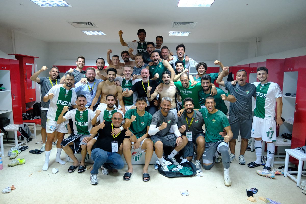 Karşılaşmanın ardından Bursaspor’un resmi sosyal medya hesabından soyunma odasında çekilen galibiyet pozu paylaşılarak, farklı zafer kutlandı.
