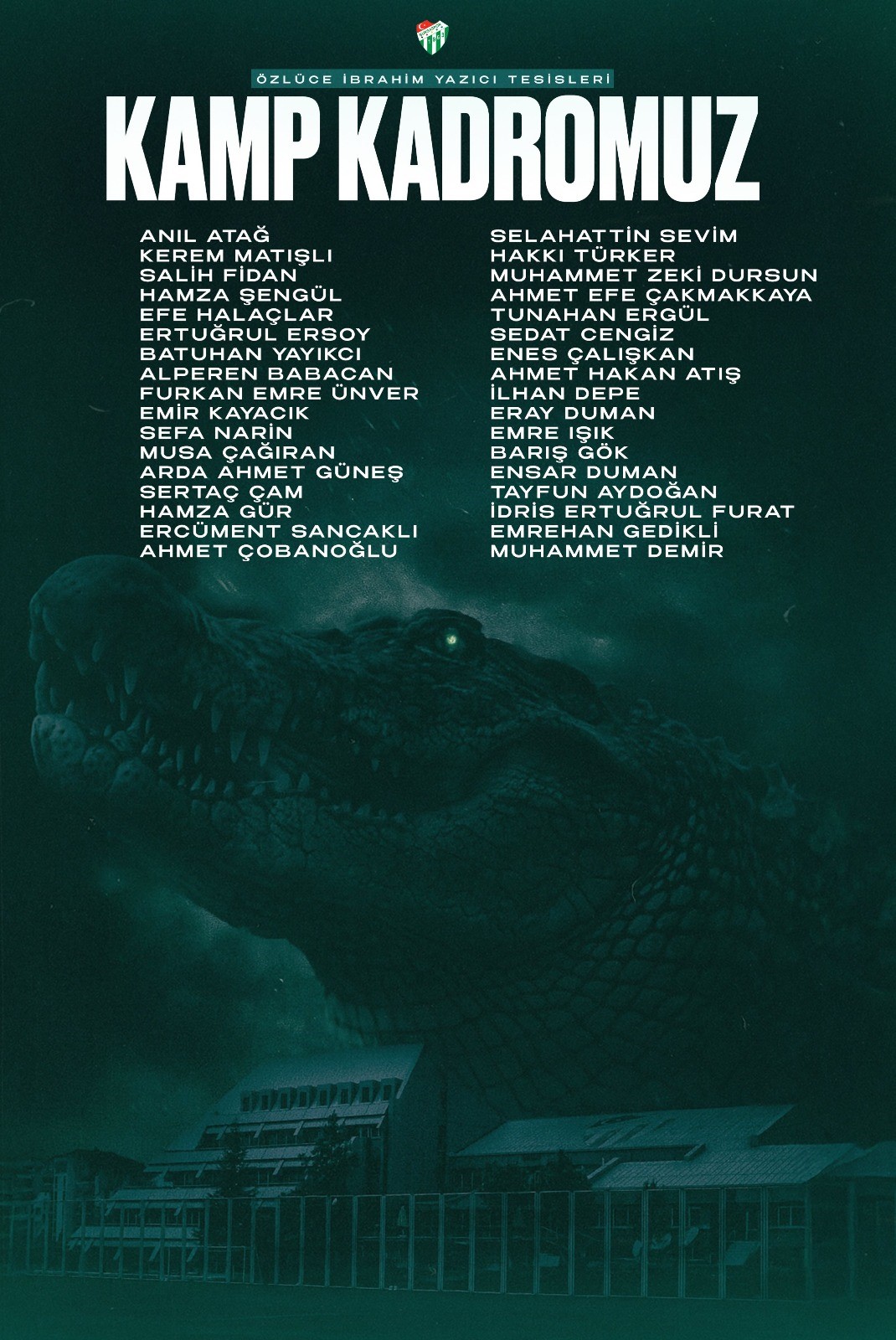 Yönetimin transfer döneminde kadroya kattığı 11 futbolcunun da kamp kadrosunda yer alması dikkat çekti. Takımın iskeletini oluşturan tecrübeli isimlerin yanı sıra genç oyuncular da listede kendine yer buldu.