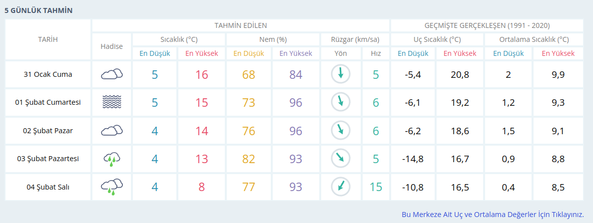 - 4 Şubat Salı: Karla karışık yağmur (yüksek kesimlerde kar)