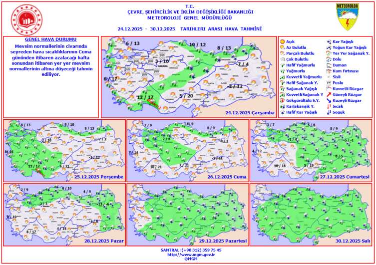 Halen mevsim normalleri civarında seyreden hava sıcaklıklarının cuma gününden itibaren düşüşe geçeceği, hafta sonu itibarıyla ise yer yer mevsim normallerinin altına ineceği bildirildi. Özellikle iç ve doğu kesimlerde gece sıcaklıklarının sıfırın altına düşmesiyle buzlanma ve don olaylarına karşı uyarı yapıldı.