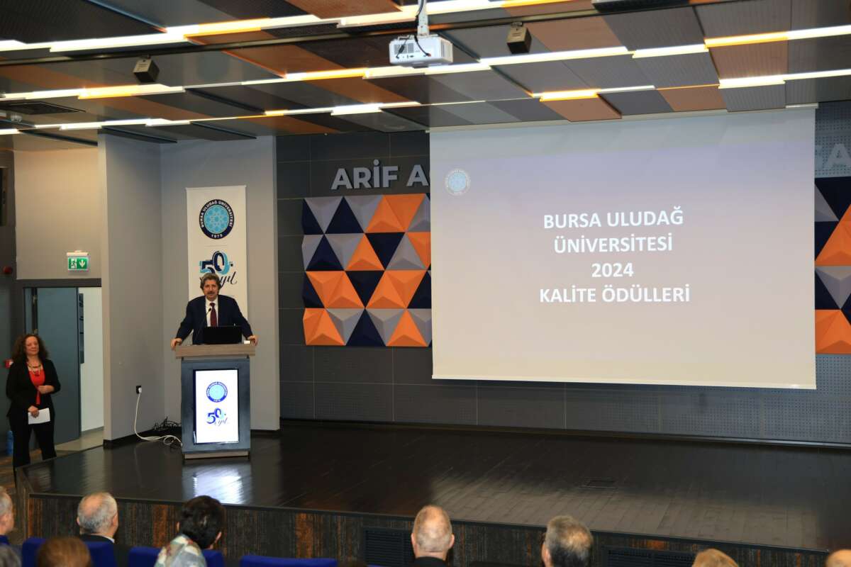 Kalite Koordinatörü Öğr. Gör. Yasemin Özdemir ise BUÜ’nün inşa ettiği kalite güvence sisteminin sadece formlar ve denetimlerden ibaret olmadığını, bunun yaşayan bir kültür olduğunu belirtti. Üniversitenin YÖKAK tarafından verilen 5 yıllık tam kurumsal akreditasyona sahip seçkin kurumlar arasında yer almasının ve ISO 9001 2015 belgesinin yenilenmesinin bu başarının somut kanıtları olduğunu söyleyen Özdemir, ulaşılan 29 program akreditasyonu ve 25 TYÇ etiketinin uluslararası standartlarla tam uyumu simgelediğini ifade etti. Bu tablonun disiplinli bir çalışmanın ürünü olduğunu dile getiren Özdemir, desteklerinden dolayı üniversite yönetimine ve tüm paydaşlara şükranlarını sunarak ödül alanları tebrik etti.
