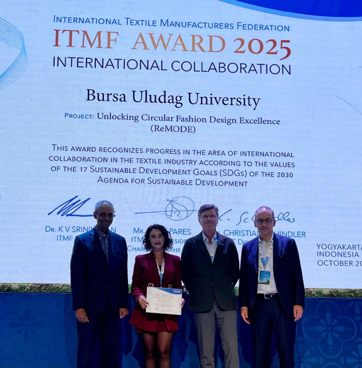 BUÜ İnegöl Meslek Yüksekokulu Tekstil Teknolojisi Programı Öğretim Üyesi Doç. Dr. Zeynep Ömeroğulları Başyigit, bu yıl Endonezya’nın Yogyakarta kentinde düzenlenen International Textile Manufacturers Federation (ITMF) ile International Apparel Federation’un (IAF) tarafından gerçekleştirdiği ITMF & IAF Annual Conference 2025’ta ödül almayı başardı. Doç. Dr. Zeynep Ömeroğulları Başyiğit’in çalışması, etkinlik kapsamında yapılan uluslararası proje yarışmasında dünya genelinden 90’ın üzerinde proje arasından seçilerek “International Collaboration Award” ödülü almaya hak kazandı.