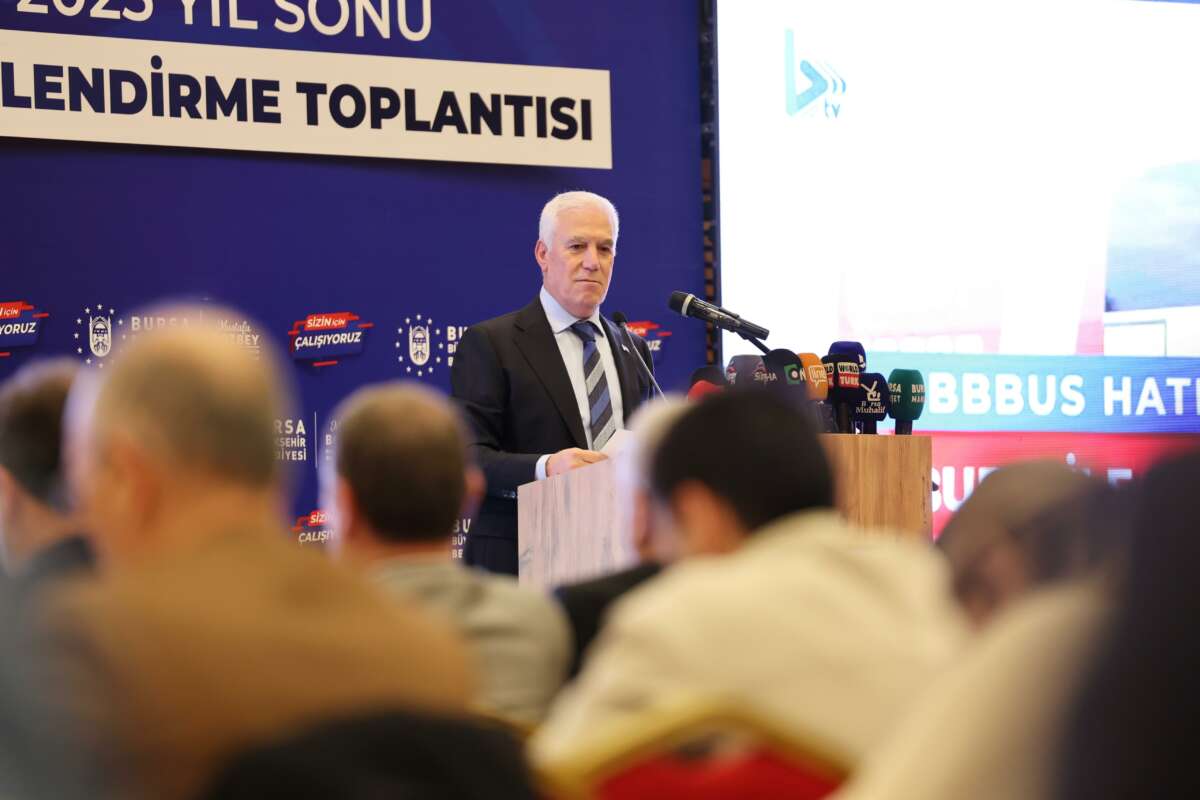 Bursa Büyükşehir Belediye Başkanı Mustafa Bozbey, 2025 yılında yapılan hizmetleri Merinos Atatürk Kongre Kültür Merkezi’nde basın toplantısıyla kamuoyuna anlattı.