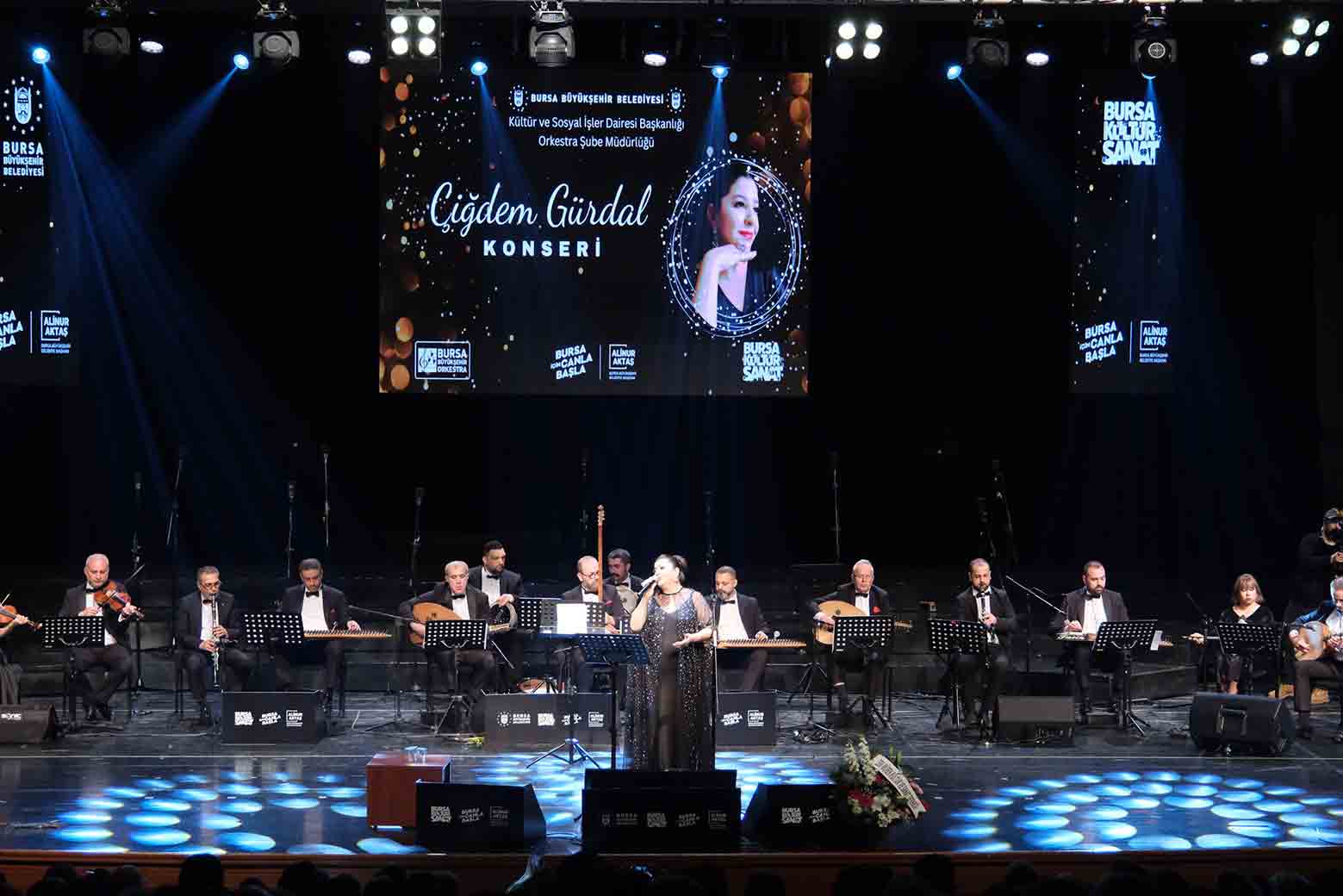 Konserin ikinci bölümünde ise konuk sanatçı Çiğdem Gürdal sahne aldı. Sanatseverlerin büyük ilgi gösterdiği konserde, Çiğdem Gürdal muhteşem sesi ve yorumuyla birbirinden güzel eserleri seslendirdi. Gecenin sonunda tüm sanatçılar ayakta alkışlanırken, Kültür ve Sosyal İşler Dairesi Başkanı Nurullah Yıldız ve Orkestra Şube Müdürü Muhterem Çevik tarafından konuk sanatçı Çiğdem Gürdal ve Şef Ayşegül Yüzgeç’e günün anısına çiçek takdim edildi.