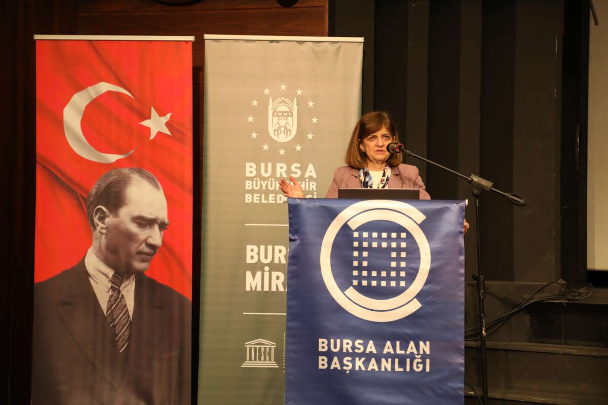 UNESCO Bursa Alan Başkanı Prof. Dr. Neslihan Dostoğlu, Türkiye’nin çok önemli deprem kuşakları bölgesinde bulunduğunu, çok fazla çatışmanın da yaşandığını dile getirdi. Bursa’nın ise milattan önce 6500 yıllarından itibaren çeşitli uygarlıklara ev sahipliği yaptığını söyleyen Dostoğlu, Bursa’nın UNESCO Dünya Miras Listesi’ne girişi süreci hakkında bilgi verdi. Acil durumlara ve afetlere hazırlıklı olmak zorunda olduklarını dile getiren Dostoğlu, kültürel varlıkların yangın ve depremler başta olmak üzere afetlere karşı daha dirençli olması için çaba harcadıklarını ifade etti.