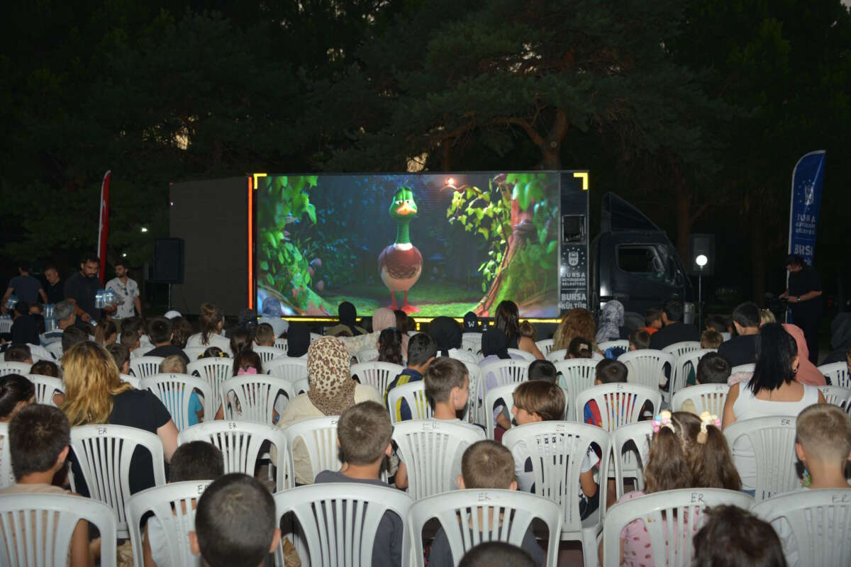 Merinos Park’ındaki etkinlik öncesinde dağıtılan patlamış mısır ve içecekleri afiyetle tüketen çocuklar, ‘Ördeklerin Göçü’ adlı çizgi filmi büyük bir keyifle izledi. Özel gereksinimli bireylerin de katıldığı etkinlikte, 7’en 70’e herkes eğlenceli bir akşam geçirdi. Açık havada çizgi film izleyerek çok mutlu olduklarını dile getiren çocuklar, Başkan Mustafa Bozbey’e ve Büyükşehir Belediyesi’ne teşekkür etti.