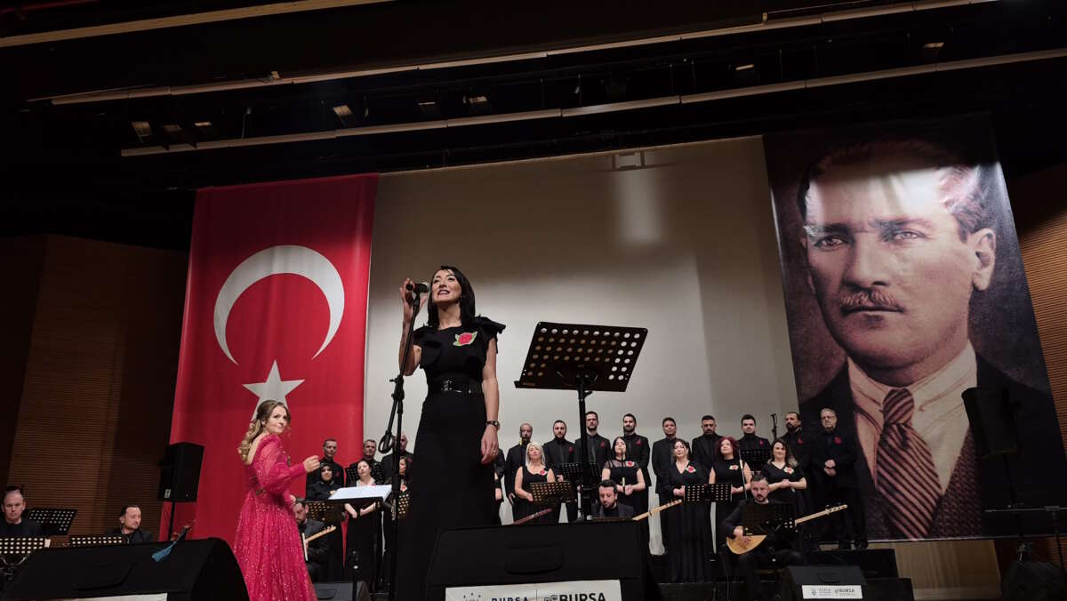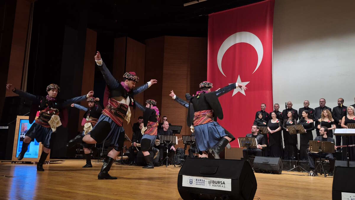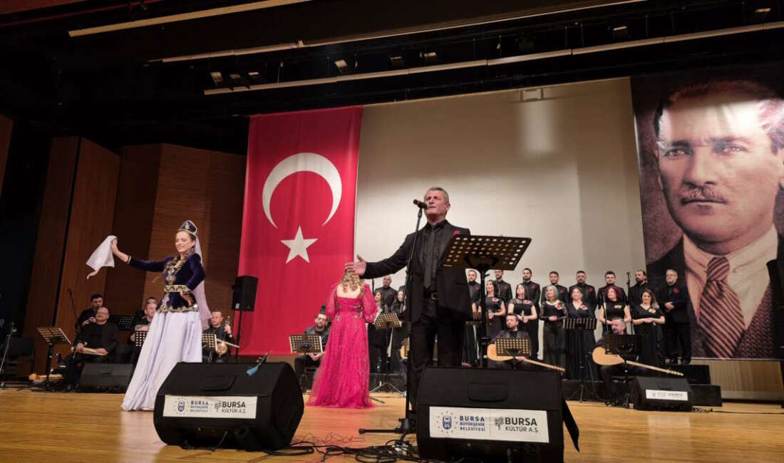 Bursa Büyükşehir Belediyesi Orkestra Şube Müdürlüğü tarafından düzenlenen Türk Halk Müziği konseri, Şef Cemile Kara Polat yönetiminde sanatseverlerin beğenisine sunuldu. Konserde sahne alan sanatçılar, solo ve koro halinde Türk Halk Müziği’nin sevilen eserlerini Bursalılar için seslendirdi.