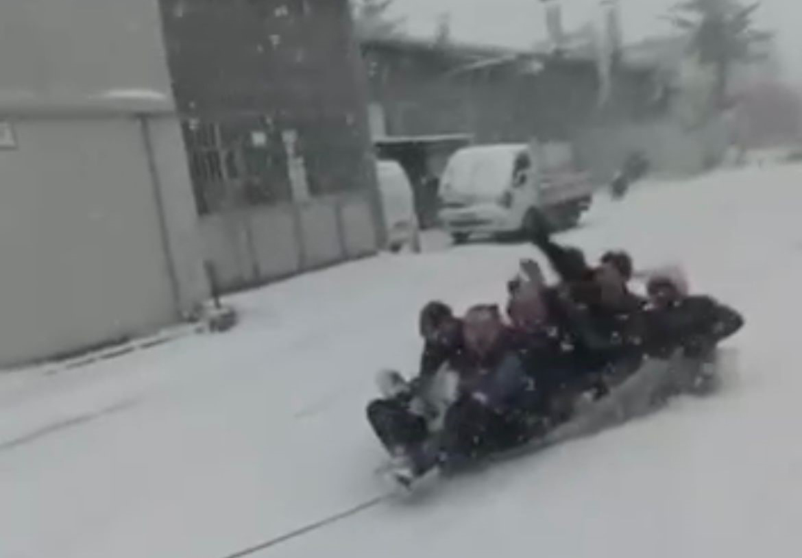 Öte yandan Yıldırım ilçesi Otosansit sanayi bölgesinde de esnaflar kendilerine oto sanayide kızak yaparak keyif yaptılar. O anlar da başka bir esnaf tarafından görüntülendi.