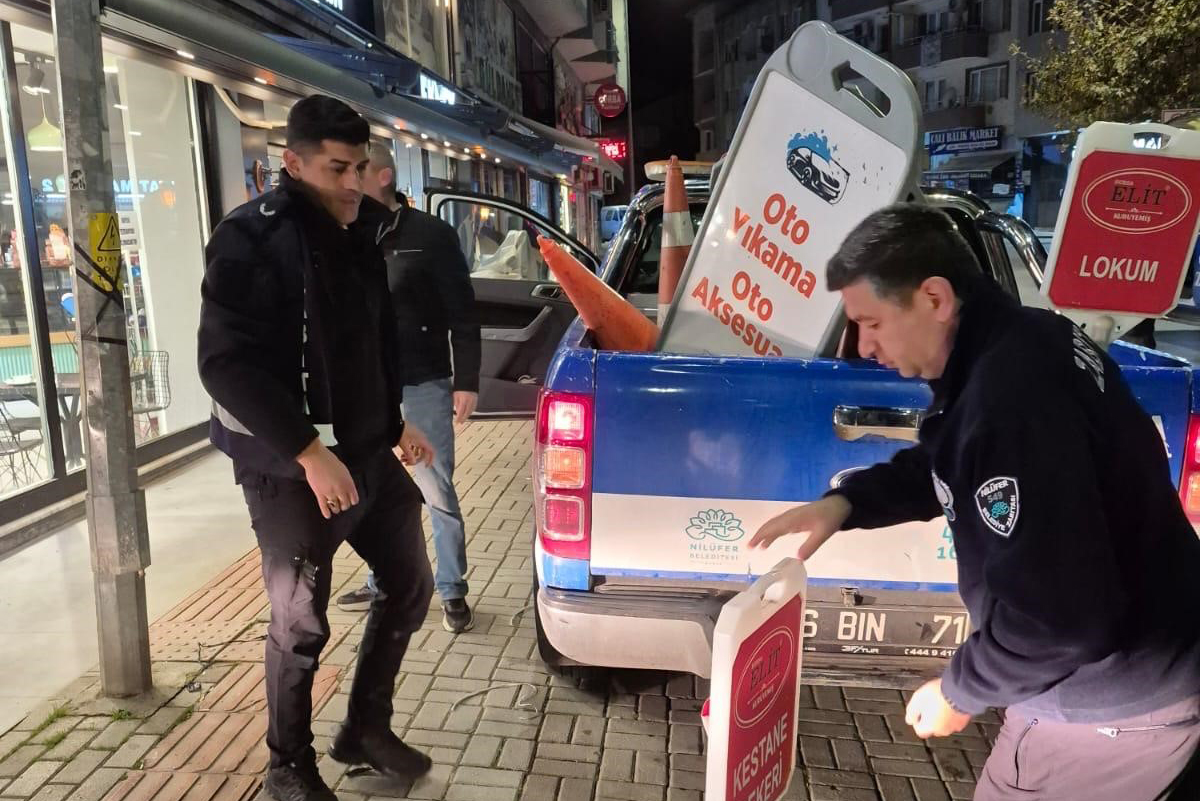 Nilüfer Belediyesi zabıta ekipleri, Çalı Mahallesi'nde yaya ve engelli yollarını işgal eden tüm materyalleri sabah erken saatlerde topladı.