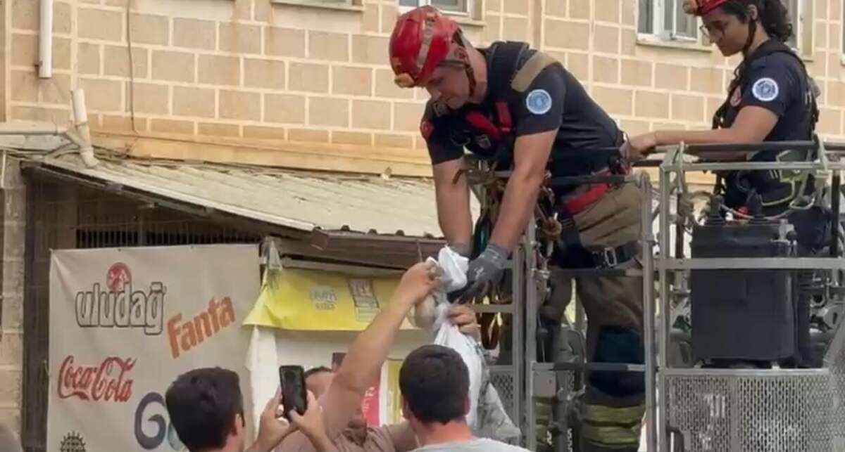 Yuvada mahsur kalan ve ayağı kırılan leyleğin imdadına Bursa Büyükşehir Belediyesi İznik İtfaiye ekipleri yetişti. İtfaiye aracının 24 metre uzunluğundaki yangın merdiveni yuvaya yetişemeyince ekiplerin kurtarma çabaları sonuçsuz kaldı. Olay yerine bu kez merdivenleri 54 metreye kadar uzanan kurtarma aracı çağrıldı. Ancak o da yuvaya yaklaştığı sırada merdivenleri kırılarak ikiye ayrıldı. Bu kez bir başka kurtarma aracı çağrıldı. Yuvasında ayağı kırık şekilde mahsur kalan leylek, ekiplerin üçüncü müdahalesinde kurtarılabildi. Yaralı leylek tedavi edilmek üzere Büyükşehir Belediyesi Veteriner Müdürlüğüne gönderildi.
