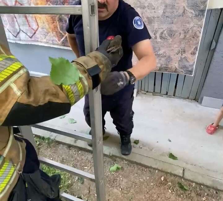 Kurtarılan kuş doğaya salınırken, mahalle sakinleri itfaiye ekiplerine duyarlılıklarından dolayı teşekkür etti.