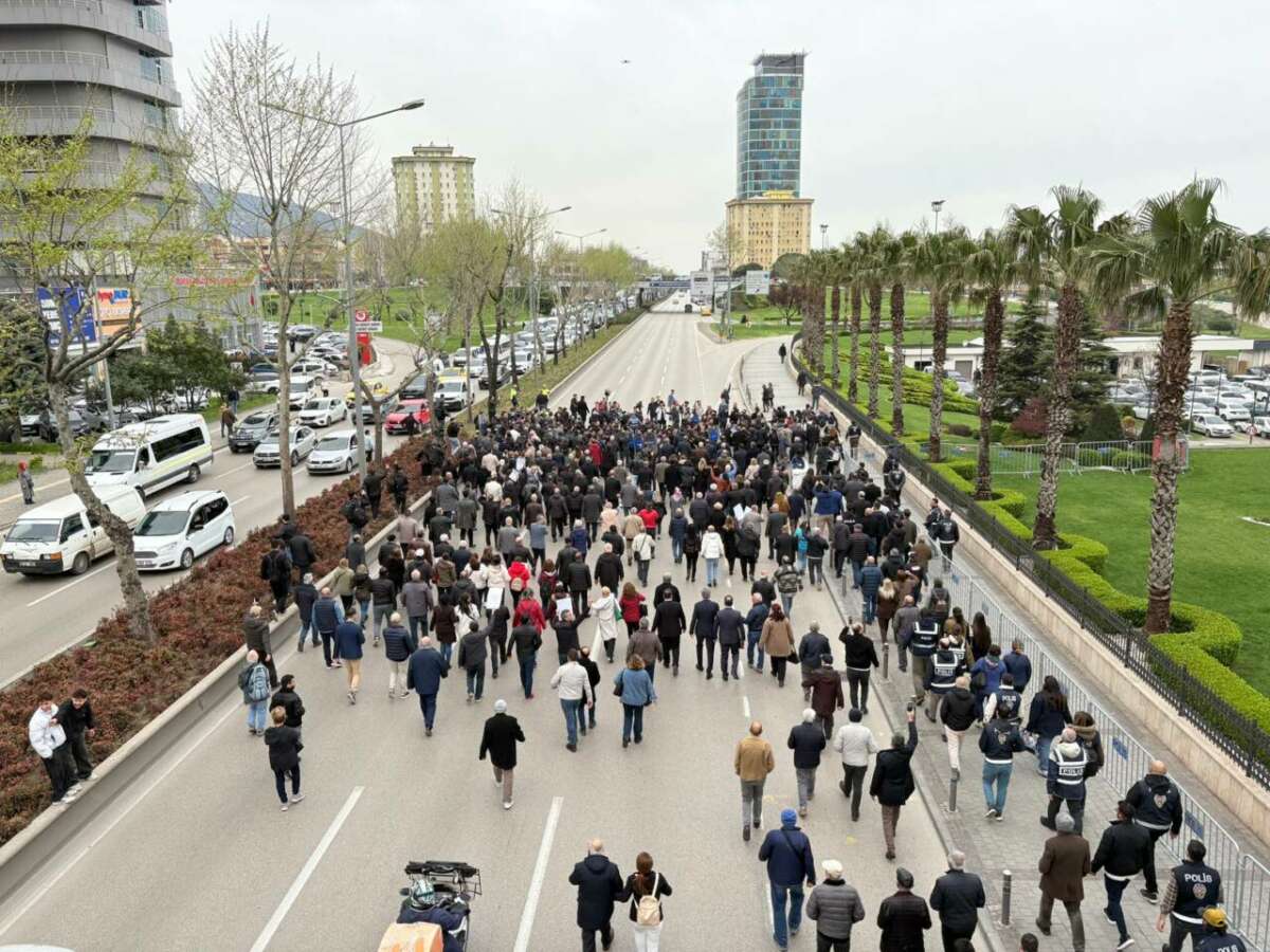 Bursa Emniyet Müdürü Kadir Gökce’nin uyarılarına rağmen caddeyi tamamen kapatan CHP’liler sloganlar eşliğinde yürüyüşlerine devam ettiler.