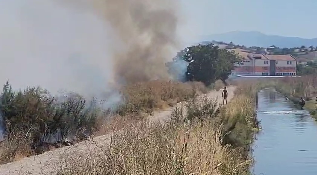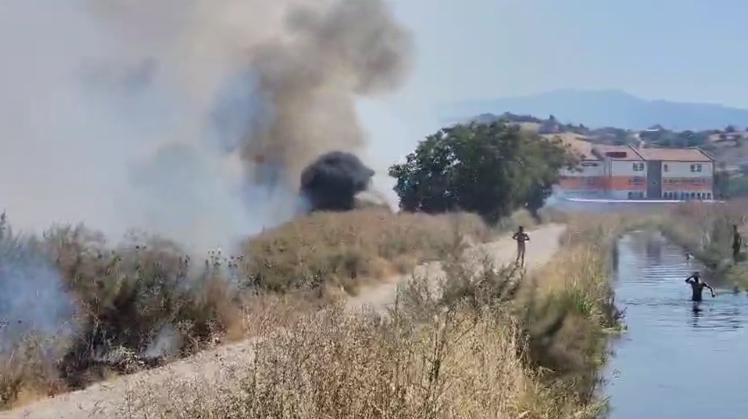 Edinilen bilgiye göre, İbrahim Önal Fen Lisesi karşısındaki otluk alanlarda yangın çıktı. Okullar bölgesine yakın noktada başlayan yangın, kısa sürede çevredeki yapıları tehdit etmeye başladı. Olay yerine hızla sevk edilen itfaiye ekipleri, uzun süren yoğun bir müdahale sonucunda yangını kontrol altına almayı başardı. Yangınla mücadele sürerken, birkaç çocuğun su kanalına atlaması dikkat çekti. Alevlerin yükseldiği alanın hemen yakınında bulunan sulama kanalına, sıcaklığın 36 dereceyi bulması nedeniyle serinlemek için giren 6-7 çocuk yaşanan tehlikeyi hiçe saydı. Çocuklar, yangına çok yakın bir mesafedeki beton köprüden suya akrobatik hareketlerle atlayarak yüzdü.