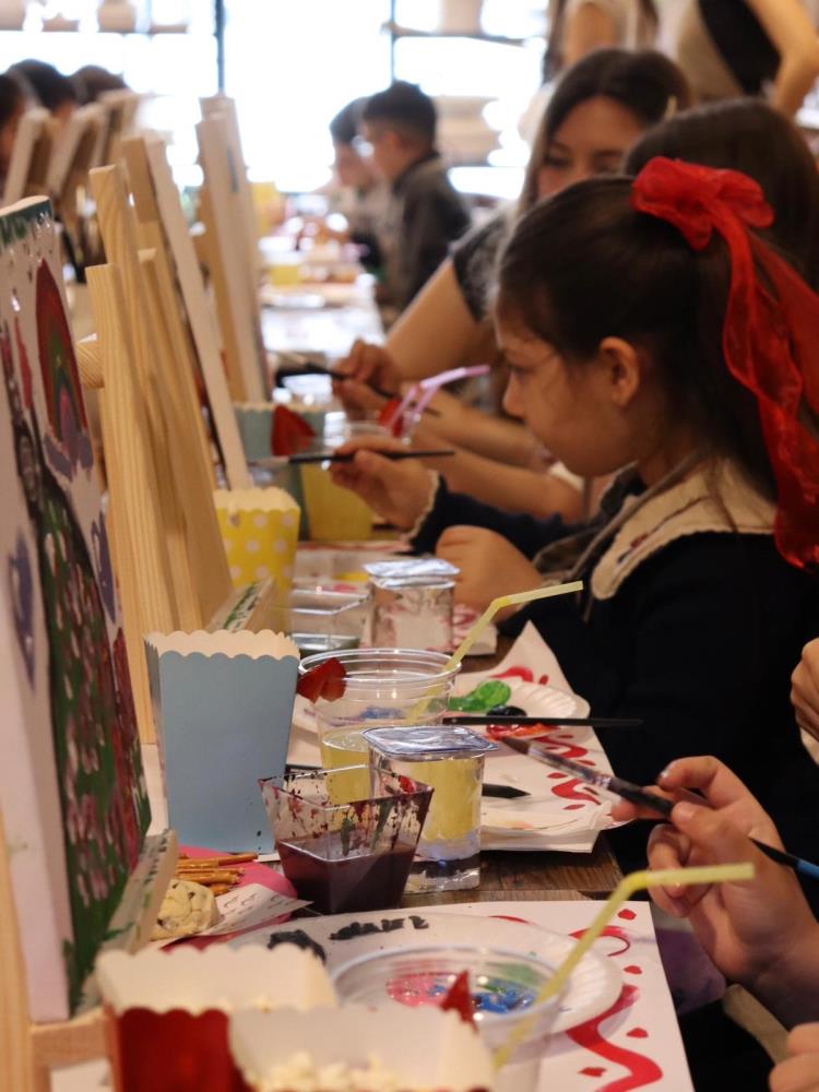 Bir sanat merkezinde, uzman sanat eğitmenleri eşliğinde düzenlenen etkinlikte çocuklar, tuval boyama, obje boyama ve ahşap boyama atölyelerine katılarak farklı teknikler ve materyallerle çalışma fırsatı yakaladı. Sanatı deneyimleyerek öğrenmenin keyfini yaşayan çocuklar, hayal dünyalarını özgürce ifade etti.