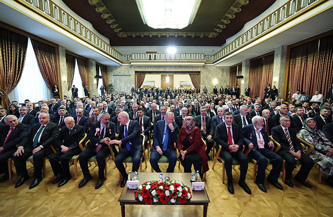 15 Temmuz’da milletin omuz omuza verdiğini kaydeden Erdoğan, “Şurası bir gerçek ki asırlardır şehit kanlarıyla sulanan bu topraklar tarihe yön veren destanların yazıldığı topraklardır. Zengin birikimiyle, müstesna seciyesiyle, taşıdığı güçlü imanla bu millet tam bin yıldır mazlumlara umut, düşmanlara korku ören bir millettir. İşte o millet Çanakkale ve milli mücadeleden sonra 15 Temmuz gecesi canıyla, kanıyla, bütün varlığıyla kıyamete kadar iftiharla alınacak şanlı bir destan yazmıştır. Bu destan çıplak ellerin tanklara, uçaklara, bombalara karşı zaferidir” diye konuştu.