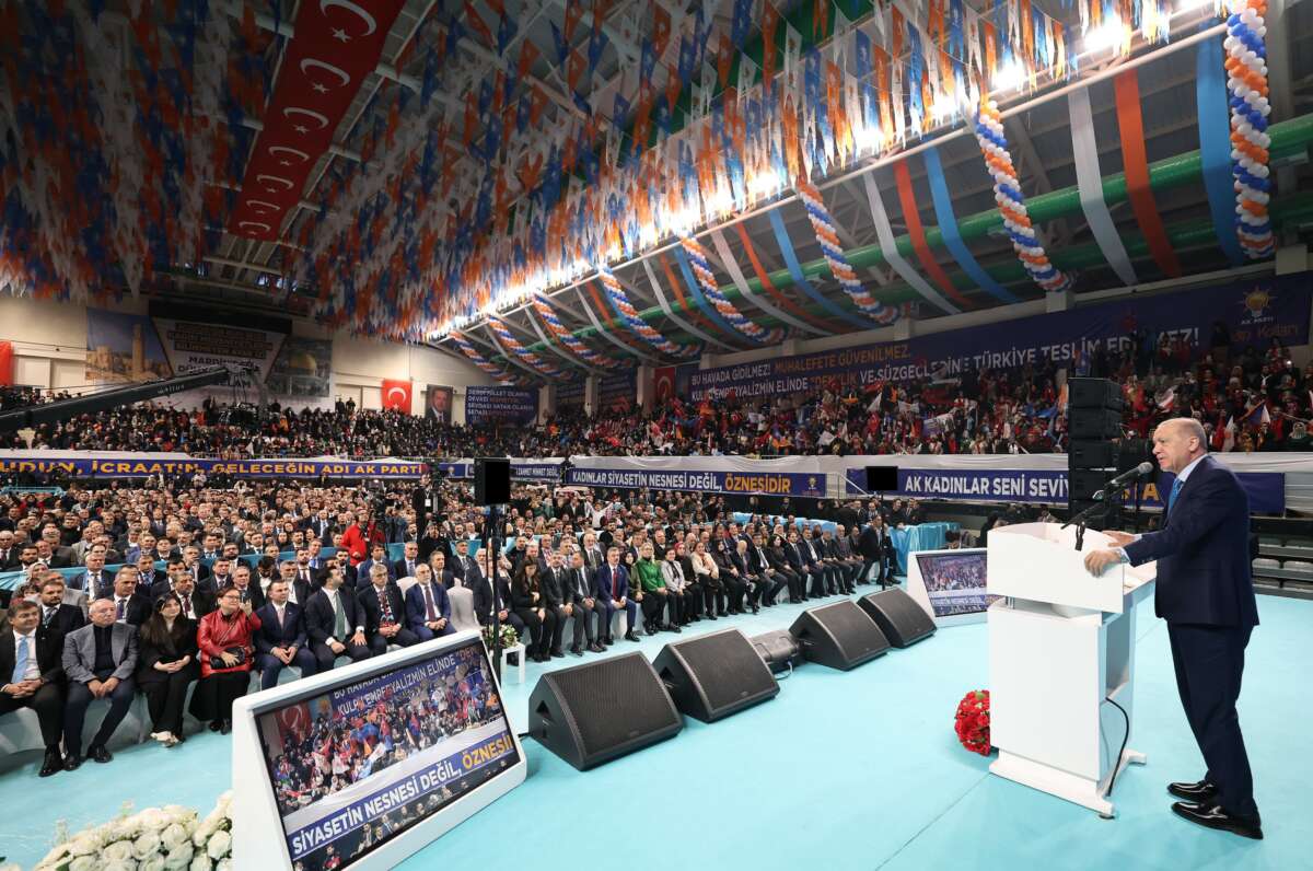 Konuşmasında CHP ve DEM Partiye göndermede bulunan Erdoğan, “CHP’nin sokak olaylarından mahkeme kapılarını aşındırmasına kadar neler yaptığını hepimiz biliyoruz. Kürt düşmanı CHP’nin yaptıklarını unutmadık. Terörün bitmesini asla istemediler. Sırtını millet yerine dağa, silaha, teröre yaslayanlar hiçbir zaman demokrasiyi istemediler. 9 yıl önce attığımıız adımlara terör örgütlerinin karşılığı caddeleri şehirleri bombalayarak çukur terörü oluşturmak oldu. Devlet olarak bu alçaklığa elbet müsaade edemezdik. Bölücü örgütün şehir eşkıyalığını açtıkları çukurlara gömdük. Belediyelerin sağladığı kaynakların bir daha teröristlerin eline geçmemesi için her türlü kararı aldık. Meşru zeminde siyaset yapmak ülkeye ve milleti hizmet etmek isteyenlere her türlü desteği sunuyoruz. Şehirlerine hizmet için çalışanlara destek olmayı görevimiz olarak biliyoruz. Bölücü örgütün şehirlerimize ve belediyelerimize çökmesine izin vermedik. Terör, özgürlüğün, hukukun ve demokrasinin düşmanıdır. Demokrasi ile terör aynı kapta bulunmaz. Bir tarafta halkın seçtiği belediye başkanı diğer tarafta ne üdüğü belli olmayan belediye başkanlığı olmaz. Buna müsamahama etmeyiz. Halkın iradesini örgütün komiserliğine teslim edenlerden şehir emin olmaz, Özer ve CHP yönetimi bu yalın görevi görmek istemiyor. Belediye başkanı olarak aday gösterilmesi, seçilmenin kuralları belliyken maalesef bu kurallar yok sayılmıştır. Devlet önlem alınca da birileri hemen bağırmaya başlıyor. Sandıkta milletten aldıkları yetkiyi millet için kullananlarla hiçbir sorunumuz yok. Terör baronlarına boyun eğmeyenlerle sorunumuz asla yok. Başında oldukları belediyeleri bölücü örgütün arpalığına çevirmeyenlerle sorunumuz yok. Ama bunlara dikkat etmeyenlerle sorunumuz vardır ve olacaktır” ifadelerini kullandı.