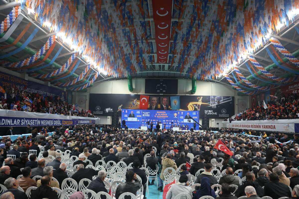 Artuklu Kapalı Spor Salonunda AK Parti Mardin 8. Olağan İl Kongresine katılan Cumhurbaşkanı Recep Tayyip Erdoğan, Suriye konusu ve teröre bulaştıkları için kayyum atanan belediyelere değindi. Erdooğan, konuşmasına Mardin’in tarihi ve kültürü ile başladı. Erdoğan, “Medeniyetimizin anıt şehri, müze şehri, gönül şehri Mardin’de bulunmaktan büyük bir memnuniyet duyuyorum. Rabbim Mardin ile birlikte Mardinli kardeşlerimizin de yolunu açık etsin. Tam bir muhabbet ikliminde gerçekleştirdiğimiz il kongremizin hayırlı olmasını diliyorum. Görevi devreden arkadaşlarımıza hizmetlerinden dolayı teşekkür ediyorum. Mardin teşkilatımızın her bir neferinden büyük hizmet bekliyoruz. Burada şunu söylemek istiyorum Mardin asla sıradan bir şehir değildir. Mardin Türkiye’nin özüdür. Mardin’in bir mahallesi Bursa ise bir mahallesi Adana‘dır. Bir mahallesi Saraybosnaysa diğeri Halep’tir, Hama’dır, Humus’tur. Bir nakışı Abbasi ise diğer nakışı Selçuklu’dur, bir nakışı Artuklu ise diğer nakışı Osmanlı’dır. Mardin her köşesi tarihten asırlık bir hatırayı taşıyan medeniyetler beşiğidir. Mardin ile aramızın bozulmasına izin vermeyiz kimse boşuna heves etmesin. Mardin’e namahrem ellerin uzanmasına göz yummayız. Mardin üzerinde farklı hesap yapanlar dün olduğu gibi yarın da hüsrana uğrayacaktır. Bu şehir sinesinde yüzlerce yıldır barış içinde yaşattığı farklı inançlarla tüm dünyaya hoşgörü dersi vermektedir. Mardin birliğin dayanışmanın huzurun şehri olmaya devam edecektir. Kıymetli yol ve dava arkadaşlarım bundan yıllar önce uzun ince bir yola çıktık. Gayemiz milletin hayallerini yeşertmek içindir. Her şey milletimiz içindir. Bizimle aynı yöne bakan bu yolu bizimle omuz omuza yol yürümek isteyenlere kapımızı açtık. Bütün ayrımları elimizin tersiyle ittik. Siyasi rakiplerimizin uzlaşmaz tavırlarına rağmen biz daima yapıcı olmaya gayret ettik laf üretmek yerine iş üretmeye çalıştık. Milletimize eserlerimizi hizmetlerimizi yatırımlarımızı anlatmaya çalıştık. Bizden daha çok icraatlarımız konuşsun istedik. Eserlerimiz projelerimiz anlatılsın istedik” diye konuştu.