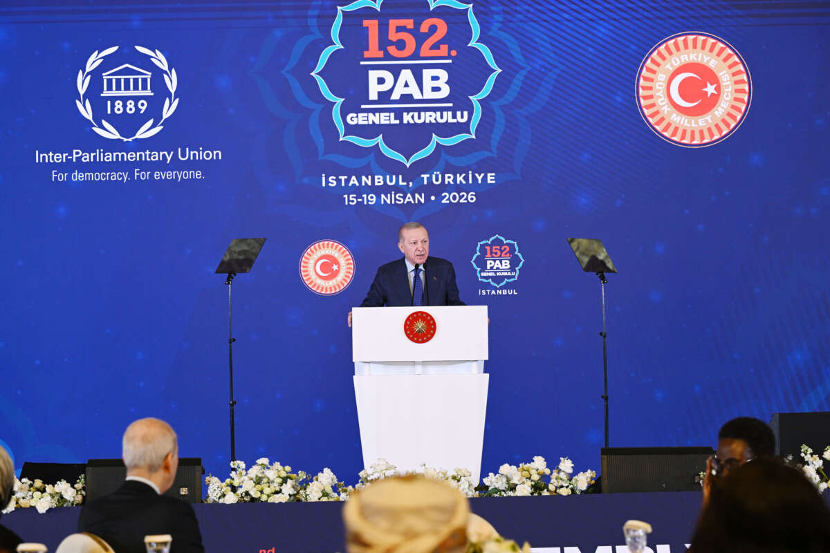 152. Genel Kurulun huzur ve barış dolu geleceğin inşasına önemli katkılar sunacağına inandığını ifade eden Cumhurbaşkanı Erdoğan, “Diyalog ve işbirliği imkanlarının artırılması ve yoğunlaştırılması temelinde birliğin üstlendiği misyonu çok kıymetli buluyorum. 152. Genel Kurulun parlamenter diplomasi zemininde daha adil ve güvenli bir dünyanın yeni ümitlerle yeşeren huzur ve barış dolu geleceğin inşasına önemli katkılar sunacağına yürekten inanıyorum. Akıl ve vicdan sahipleri olarak şu gerçeği hepimiz çok iyi biliyoruz. 80 yıl önce galipler eliyle tesis edilen uluslararası sistem bugün büyük bir meşruiyet kriziyle yüz yüzedir. Sistemin temelini teşkil eden değerler, ilkeler, kurallar ve teamüller küresel ölçekteki anlam ve itibarını kaybetmenin eşiğindedir. Uluslararası hukukun bağlayacı hükümleri işledikleri savaş ve insanlık suçlarına her gün yenilerini ekleyen aktörler üzerindeki tesirini maalesef yitirmiştir” dedi.