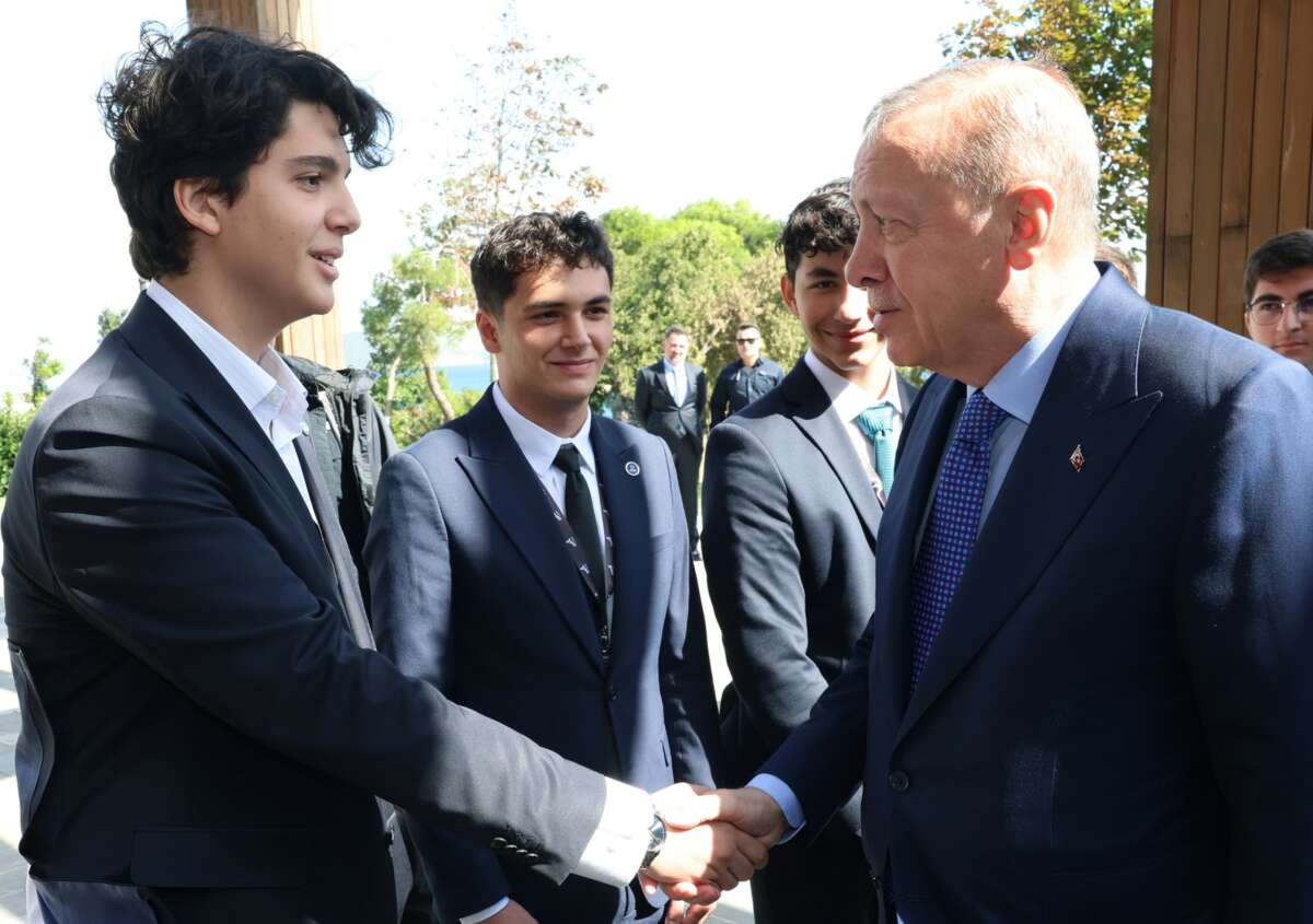 Erdoğan, “Filistin’de neler oluyor gördünüz, ellerinde tencerelerle oradan bir kap çorba, bir kap yemek alayım diye nasıl çaba gösteriyorlar izlediniz. Açlıkla mücadele eden yavruların dramını kalbimizin derinliklerinde biz de hissediyoruz. Yüreklerimi yakan bu manzara karşısında sadece elimizi değil çoğu zaman tüm gövdemizi ortaya koyuyoruz. Sevgili gençler, sizin ve ekranların başında bizi izleyen genç arkadaşlarımızın şunu bilmesini isterim, bizim tek amacımız vardır, o da bölgede barışın, huzurun, istikrarın güçlü bir şekilde sağlanmasıdır. Türkiye olarak işte buna giden yolu açmanın derdindeyiz. Binlerce yıldır süzülüp gelen devlet aklıyla 500 seneyi geride bırakan hariciye geleneğimizle büyüyen ekonomimiz, köklü kurumlarımız ve ilkeli dış politikamızla coğrafyamızdaki yangınları söndürmeye gayret ediyoruz. Dış politikayı asla sıfır toplamlı bir oyun olarak görmüyor, barış, refah ve istikrarı paylaştıkça çoğaldığına yürekten inanıyoruz” dedi.