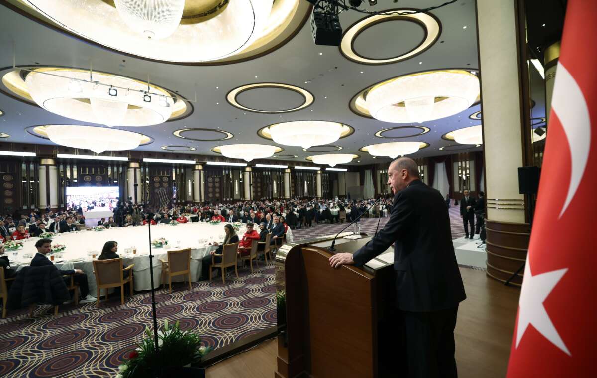 Cumhurbaşkanı Recep Tayyip Erdoğan, KYK öğrencileri, sporcular ve gençlerle iftar programında bir araya geldi. Cumhurbaşkanlığı Külliyesi’nde gerçekleşen iftar programında konuşan Erdoğan, siyasi kariyeri boyunca her zaman gençlerle çalıştığını ve bundan da gurur duyduğunu söyledi. Gençlere Türkiye’ye sahip çıkmalarını da öğütleyen Erdoğan, Türkiye’nin onların omuzunda yükseleceğini söyledi.