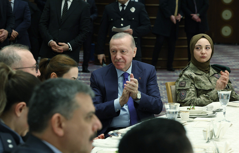 Cumhurbaşkanı Recep Tayyip Erdoğan, Polis, Jandarma, Sahil Güvenlik Personeli ve Güvenlik Korucuları İle İftar Programında bir araya geldi. Cumhurbaşkanlığı Külliyesinde düzenlenen programda konuşan Cumhurbaşkanı Erdoğan, Türkiye’nin bulunduğu coğrafyada her gün yeni bir sorunun ortaya çıktığını ancak Türkiye’nin bu sorunları çözecek planlara sahip olduğunu söyledi.