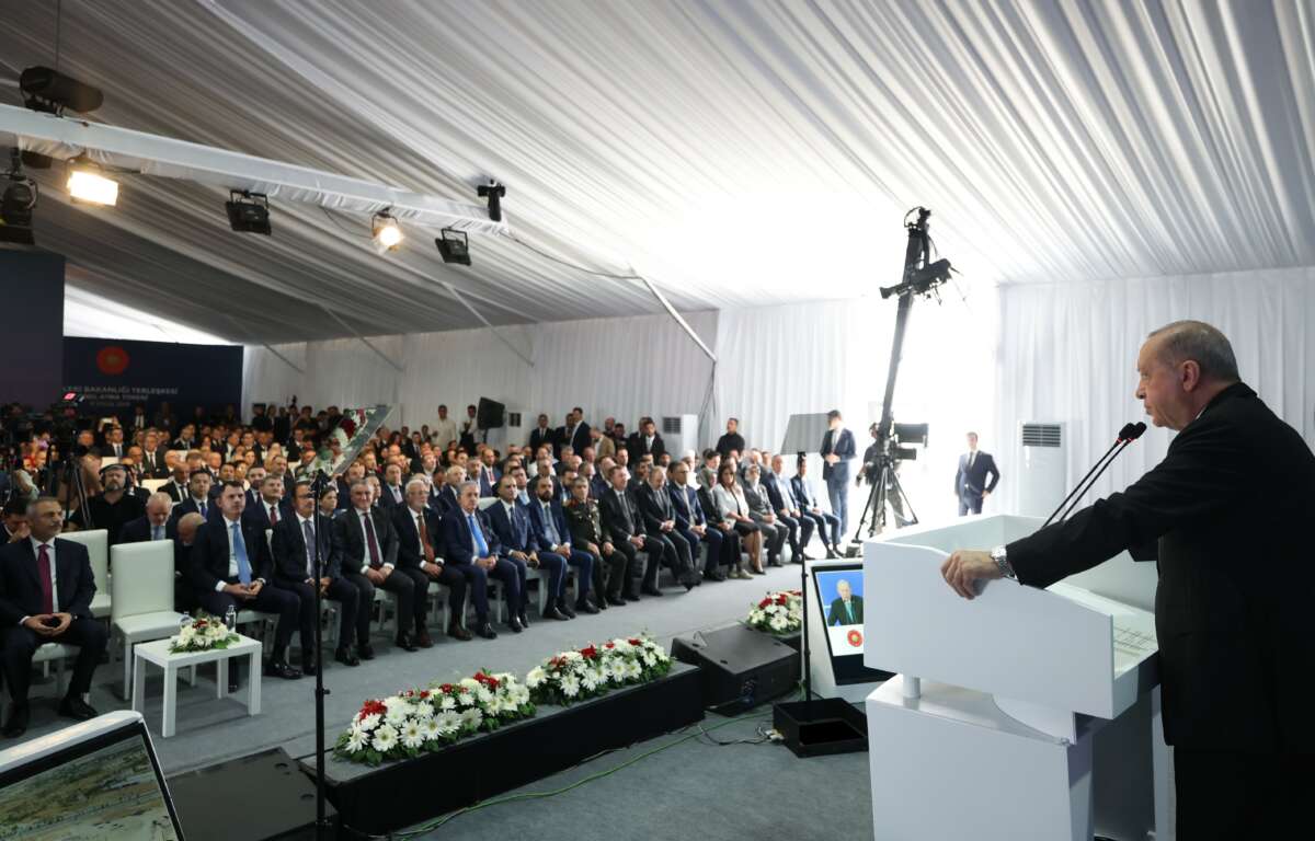 Projeye katkı yapan herkese tebriklerini ileten Cumhurbaşkanı Erdoğan, uluslararası siyasetin giderek daha değişken, daha belirsiz ve öngörülmez bir hal aldığına dikkat çekti. Cumhurbaşkanı Erdoğan, küresel krizlere dikkat çektiği konuşmasında ,”Sık sık söylüyorum; bilhassa içinde bulunduğumuz bölgede her sabah gözlerimizi yeni bir krize açıyoruz. Hükümet olarak tüm bu krizleri, çatışmaları ve belirsizlikleri milletimizin âli menfaatlerine halel getirmeden başarıyla yönetmenin gayretindeyiz. Balkanlar’dan Orta Asya’ya, Afrika’dan Latin Amerika’ya, Avrupa’dan Asya-Pasifik’e kadar geniş bir coğrafyada istikrar ve işbirliğinin kökleşmesi için samimiyetle çaba harcıyoruz. Gerektiğinde sesimizi yükseltiyor, hakkı haykırıyoruz” dedi.