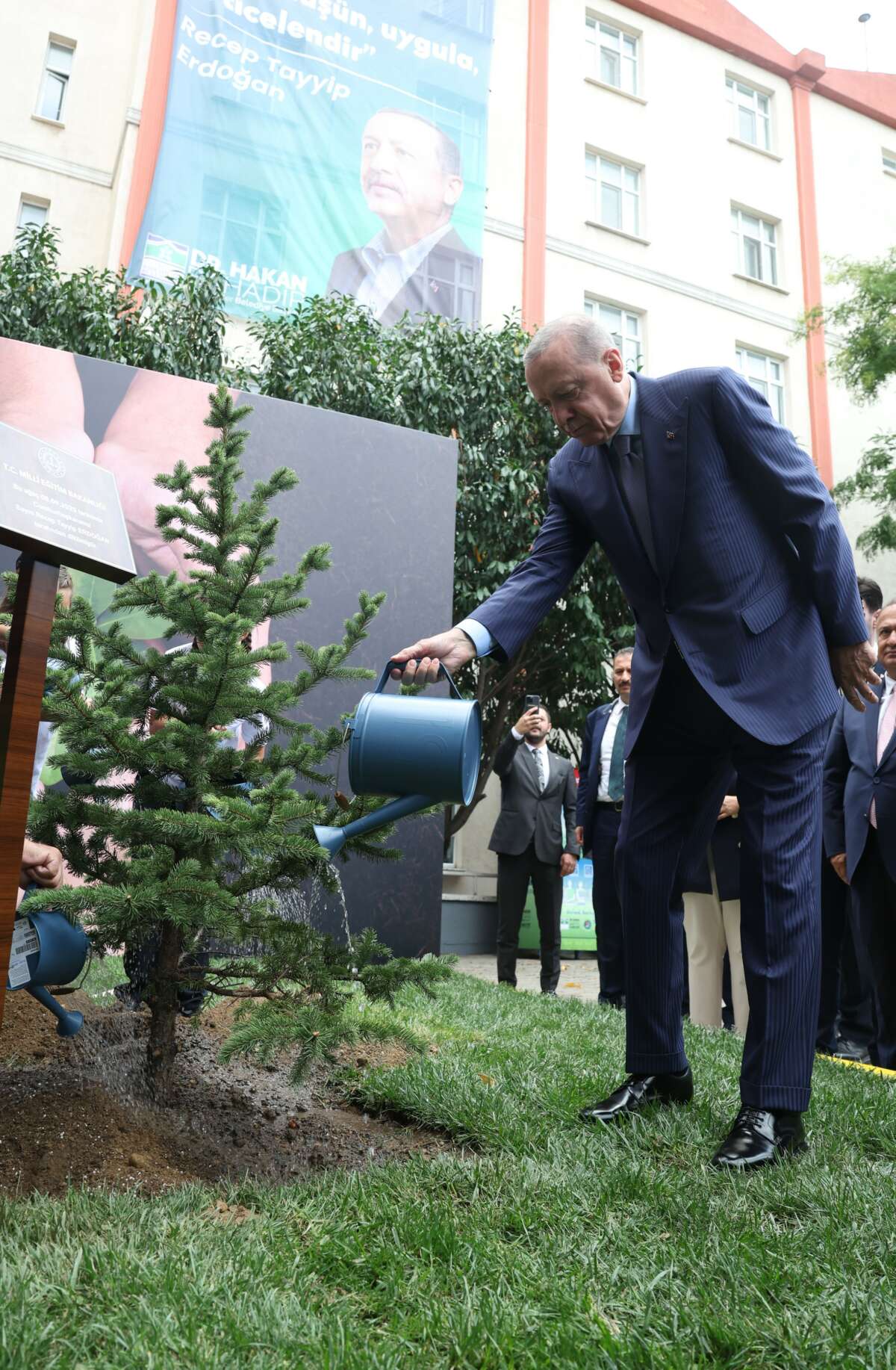 Cumhurbaşkanı Recep Tayyip Erdoğan, Bahçelievler Mümtaz Turhan Sosyal Bilimler Lisesi’nde 2025-2026 Eğitim Öğretim Yılı Açılış Töreni’ne katıldı. Erdoğan, tören öncesinde okul bahçesinde Milli Eğitim Bakanı Yusuf Tekin, Tarım ve Orman Bakanı İbrahim Yumaklı, Bahçelievler Belediye Başkanı Hakan Bahadır ve öğrenciler tarafından karşılandı. Öğrenciler İlk Dersimiz Yeşil Vatan projesi kapsamında Cumhurbaşkanı Erdoğan’a birlikte fidan dikmek istedi. İstekleri geri çevirmeyen Cumhurbaşkanı Erdoğan, Milli Eğitim Bakanı Tekin, Tarım ve Orman Bakanı Yumaklı ile birlikte fidan dikerek can suyu verdi.