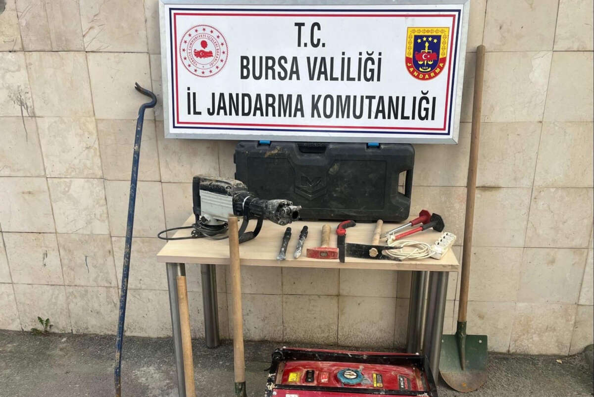 Bursa İl Jandarma Komutanlığı ekipleri, Gemlik İlçesi Şahinyurdu Mahallesi ormanlık alanında kaçak kazı yapıldığı ihbarı üzerin harekete geçti. Olay yerine giden ekipler, define arayan 4 kişiye suçüstü yaptı. Gözaltına alınan zanlılarla beraber, 1 adet jeneratör, 2 adet kırıcı ve delici matkap ve 13 adet muhtelif kazı malzemeleri ele geçirildi.