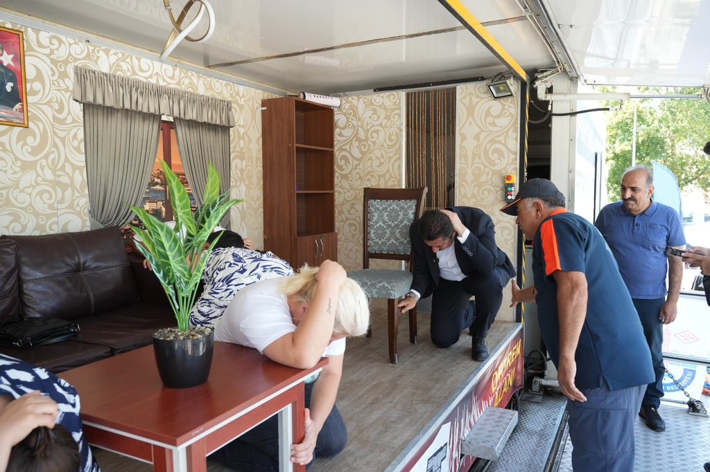 Yenişehir Belediyesi, afetlere hazırlık alanında kurum ve kuruluşlarla iş birliğini geliştirmeye devam ediyor. Yenişehir Heykel Meydanı’nda deprem öncesi, deprem anı ve sonrasında doğru davranış biçimleri hakkında bilgilendirmelerde bulunma ve afet farkındalığını artırmak için deprem simülasyon eğitimi düzenlendi. Gerçek deprem deneyiminin yaşatıldığı simülasyon tırında, AFAD eğitmenleri vatandaşlara deprem anında ve sonrasında yapılacakları uygulamalı olarak anlattı.