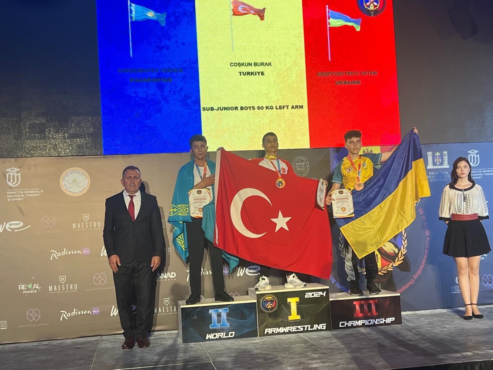 Bursa’da çocukluk yaşlarından itibaren bilek güreşi sporuyla ilgilenen Burak ve Berat Coşkun kardeşler, Moldova’da gerçekleşen dünya şampiyonasında derece elde etti. Burak Coşkun 15 yaş altı 60 kilogramda sol kolda dünya şampiyonu, sağ kolda dünya 3.’sü oldu. Berat Coşkun ise 15 yaş altı 65 kilogramda sağ kolda dünya 2.’si oldu. Ayrıca aynı takımdaki genç sporcu Raşid Mavigil 18 yaş altı 55 kilogramda sol kolda dünya şampiyonu olarak Türk bayrağını dalgalandırdı. Şampiyona sonrası yurda dönen gençlere otogarda sürpriz karşılama töreni hazırlandı. Türkiye’yi en iyi şekilde temsil ederek gururlandıran gençler, davul zurnalar eşliğinde karşılanarak çiçek takdim edildi.